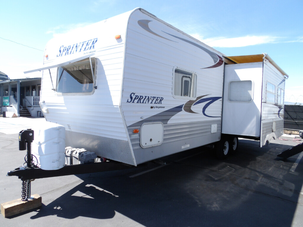 WE DO NOT CHARGE FOR PRE-DELIVERY INSPECTION OR PREP FEES LIKE MOST OTHER DEALER'S! 2004 KEYSTONE SPRINTER 274RLS, 1 SLIDE-OUT WITH TOPPER, REAR LOUNGE MODEL, FRONT WALK-AROUND QUEEN BED, 29' FT LONG PULL TRAVEL TRAILER, DRY WEIGHT ONLY 6820 LBS, ***5 BRAND NEW TIRES INCLUDING THE SPARE***, STABILIZER JACKS ON ALL 4 CORNERS, NEW AWNING FABRIC, SLIDE-TOPPER, TWO 12-VOLT BATTERIES, POWER TONGUE JACK, DUAL 7.5 GALLON LP PROPANE TANKS, SPARE TIRE, 110 EXTERIOR OUTLETS, T.V ANTENNA, EXTERIOR CABLE HOOK UP, OUTSIDE SHOWER, FRONT WINDOW WITH ROCKGUARD, EXTERIOR LADDER, BATTERY DISCONNECT SWITCH, PULL-OUT STORAGE TROUGH, 6 GALLON GAS DSI WATER HEATER, AM/FM/CD/DVD PLAYER WITH INTERIOR SPEAKERS, 2 DOOR 6 CUBIC FOOT GAS/ELECTRIC REFRIGERATOR/FREEZER, 2 BASIN SINK, 3 BURNER COOKTOP, OVEN, MICROWAVE, REAR ROCKING CAPTAIN CHAIRS, DINETTE/SLEEPER, SOFA/SLEEPER, SLEEPS 5, NIGHT SHADES, PRIVATE BATHROOM WITH SHOWER/TUB COMBO, SKYLIGHT OVER SHOWER, MEDICINE CABINET, MAXX-AIR FAN IN THE BATHROOM, SEPARATE ENTRY TO THE BEDROOM, WALK-AROUND QUEEN BED, HAMPER, 13,500 BTU DUCTED ROOF A/C, DUCTED HEATER, WE DO NOT CHARGE FOR PRE-DELIVERY INSPECTION (PDI), SAFETY INSPECTION, OR PREP FEE'S. MOST OTHER DEALERS CHARGE ADDITIONAL FEES FOR PDI UP TO $2895 EXTRA, YOU BETTER ASK! HITCH WORK AND FINANCING AVAILABLE! ANY GOVERNMENT FEES, SALES TAX, REGISTRATION FEE, DEALER, LICENSE FEE, FINANCE CHARGES, ANY DEALER DOCUMENT PREPARATION CHARGE, AND ANY EMISSION TESTING CHARGE, ARE ADDITIONAL TO THE ADVERTISED PRICE.