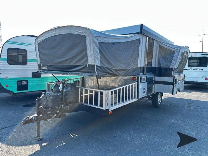 Single Slide Evolution Series Folding Camper w/Rear & Front Tent End Beds, Storage, Bed Step, Storage, Booth Dinette w/Portable Table Slide Out, 2 Burner Range, Single Galley Sink, Storage, Cassette Potti w/Shower, Front Cargo Deck Exterior and More.