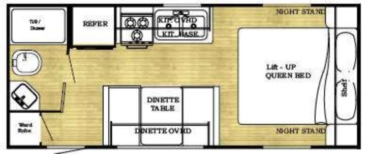 Ameri-Lite Travel Trailer w/Rear Corner Bath Including Lav., Tub/Shower & Toilet, Wardrobe, Refrigerator, 3 Burner Range, Double Kitchen Sink w/Overhead Cabinet, Booth Dinette w/Overhead Storage, Front Lift-Up Queen Bed w/Nightstands and More.