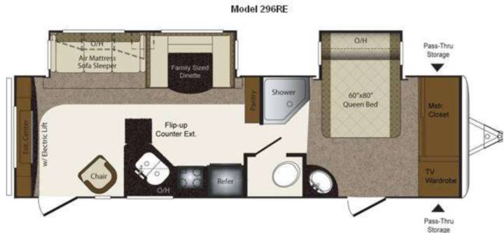 Laredo Super Lite Travel Trailer by Keystone (Stock Only) w/Double Slideouts, Rear Living Area w/Full Wall Ent. Center w/Electric Lift, Sofa Sleeper w/Air Mattress and Family Sized Dinette Slideout, Lounge Chair, Pantry, Dbl. Kitchen Sink, 3 Burner Range, Refrigerator, Flip-Up Counter Extension, Angle Shower, Private Toilet Area, Sink, Queen Bed Slideout, Private Bedroom Entry, Master Closet, TV/Wardrobe, Front Pass-Thru Storage and More!