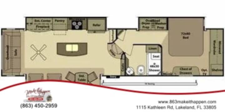 Specs: Length: 41.0' | Weight: 11515.0 lbs | Slide Outs: 4 | Sleep Number: 3 | Fresh Water Tank: 85.0 gal | Black Water Tank: 82.0 gal