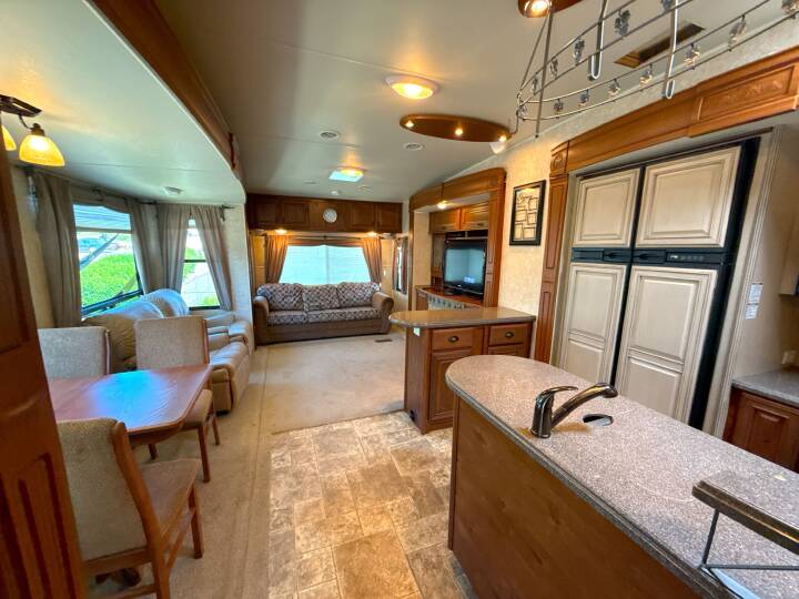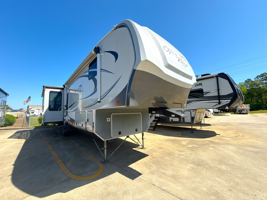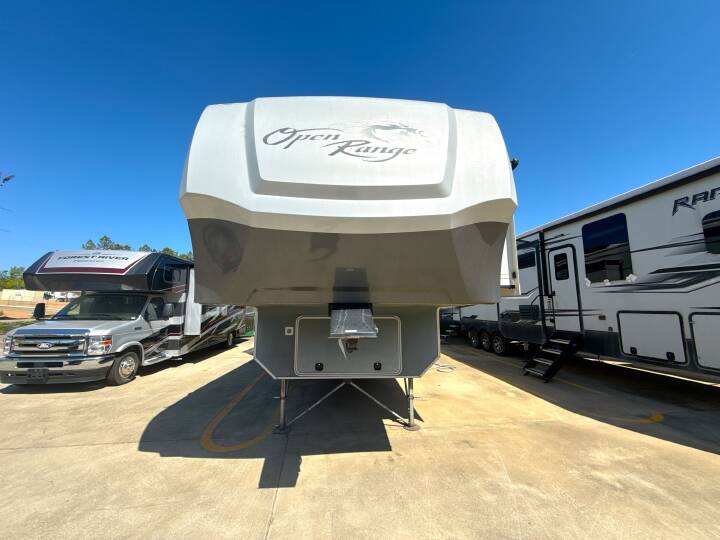 This Fifth-Wheel sleeps 3 people and is available at Camping World in Calera, AL.