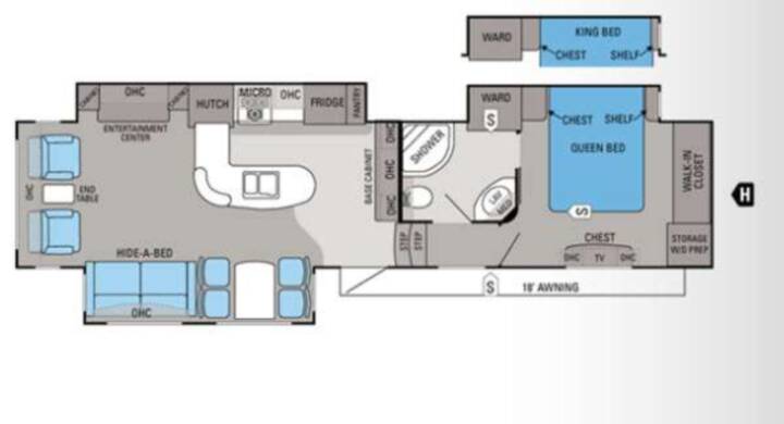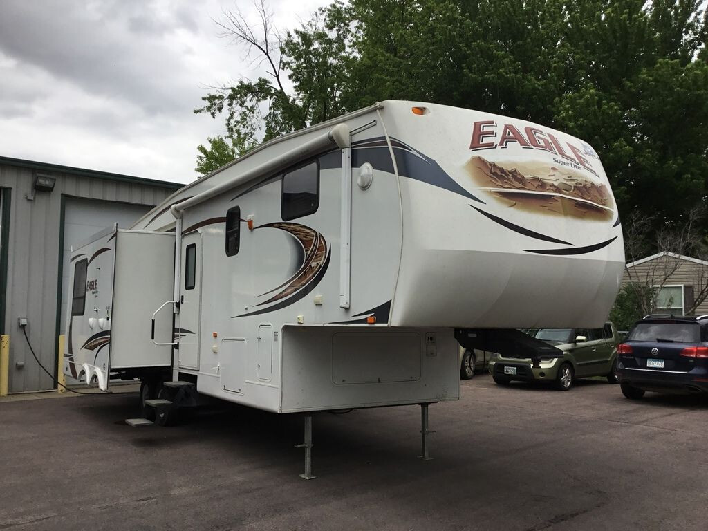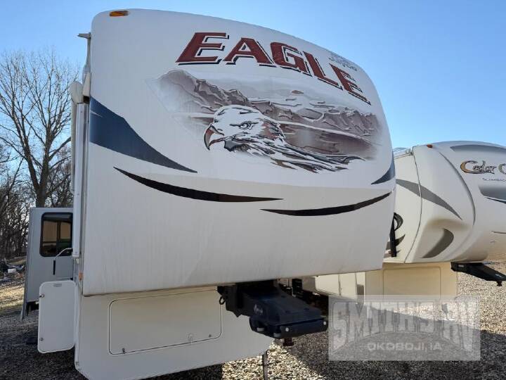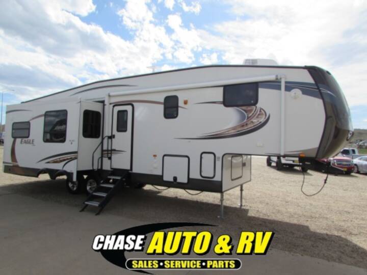 Triple Slide Eagle Fifth Wheel, Rear Living Area w/2-Lounge Chairs, End Table, Dbl. Cabinets/Ent. Center/Hutch/Microwave/3-Burner Range/Refrigerator/Pantry Slide, Hide-A-Bed/Free-Standing Table & Chairs Slide, Dbl. Kitchen Sink, Base Cabinet, Step Up To Bed/Bath, Toilet, Shower, Lav., Med. Cab., Chest, TV, Storage, Washer/Dryer Prep, Walk-In Closet, Queen Bed/Chest/Shelf/Wardrobe Slide, Overhead Cabinets Throughout, 18' Awning & Much More. Available Options May Include: King Bed.