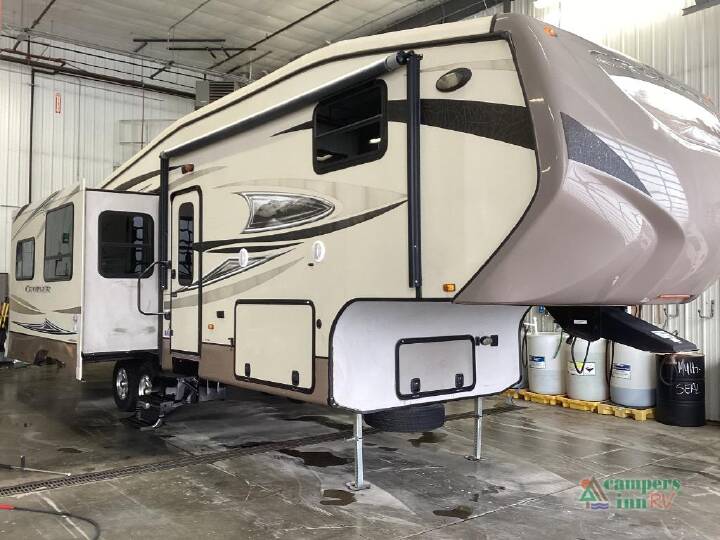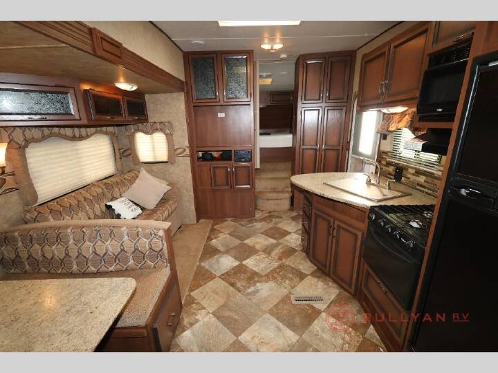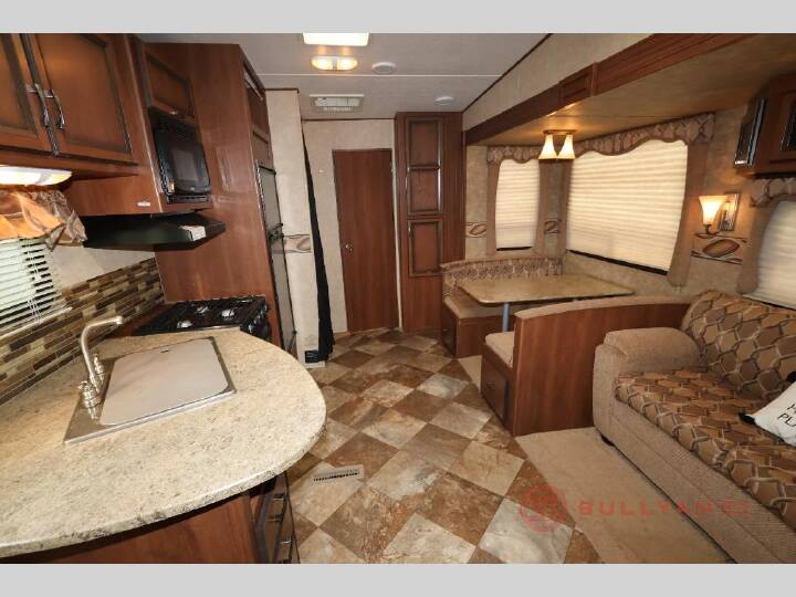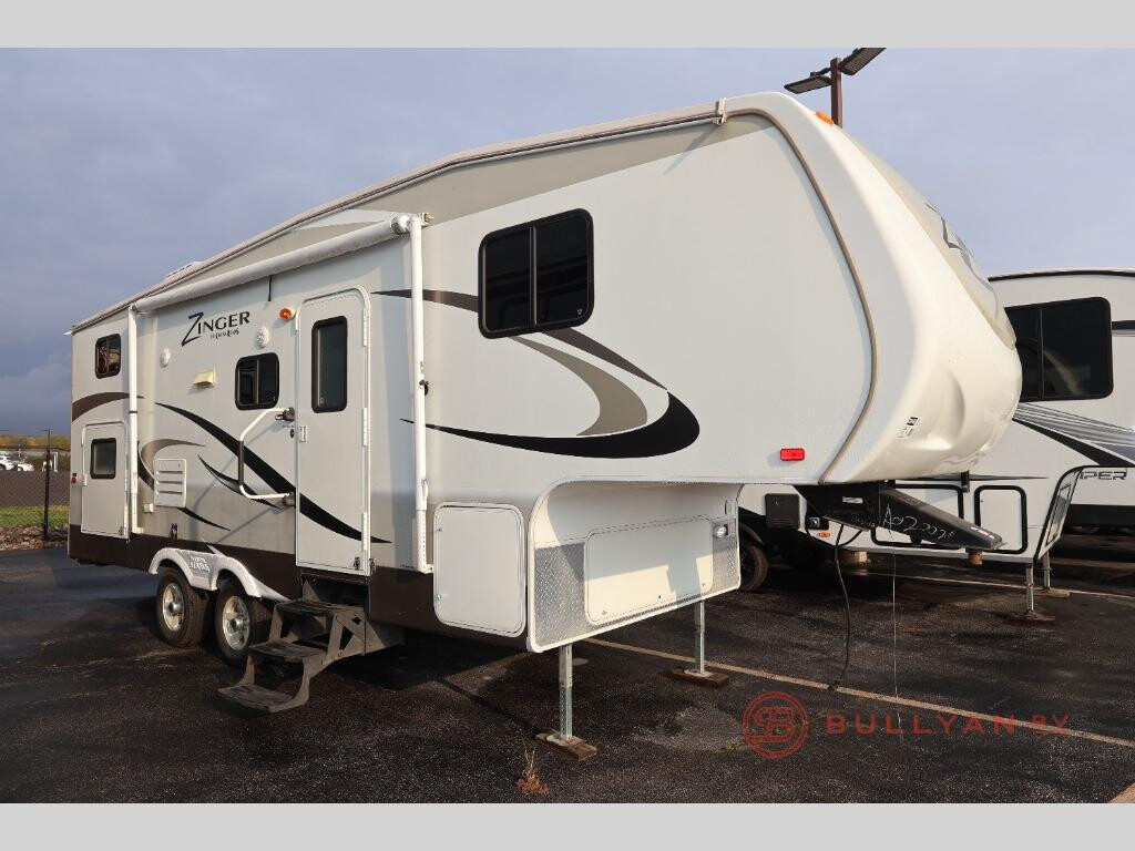 Single Slide Zinger Bunkhouse Fifth Wheel w/Rear Corner Bath Including Tub, Lav. w/Med. Cabinet & Toilet, Bunk Beds, Exterior Storage Below Bunks, Pantry, Booth Dinette & Sofa Slide, Refrigerator, 3 Burner Range w/Microwave, Double Kitchen Sink, Wardrobe, Ent. Center, Step Up to Front Queen Bed w/Wardrobes, Linen, Overhead Storage & More. Available Options May Include: Grill.