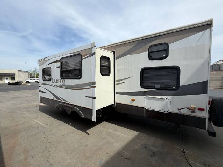 2013 Keystone RV Laredo Super Lite, The 2013 Keystone Laredo 291TG is a 33-foot bunkhouse travel trailer featuring a lightweight design, single slide-out, and outdoor kitchen. It typically sleeps 8-9 people, with a dry weight around 6,600 lbs and a GVWR of 8,200 lbs, making it suitable for families needing versatile sleeping arrangement
