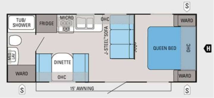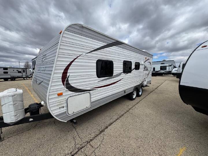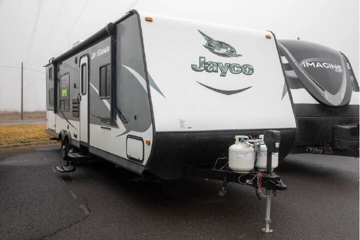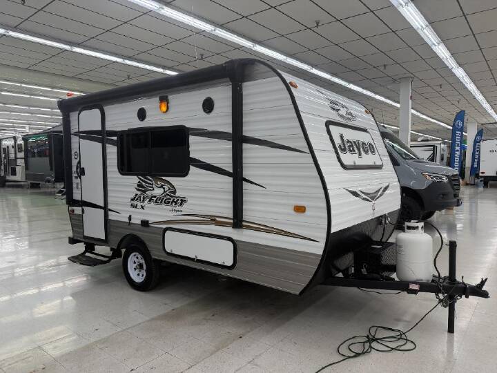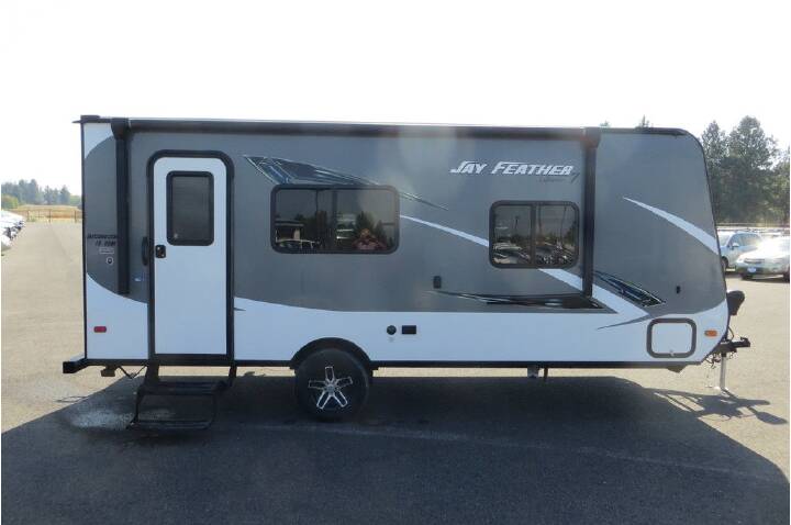 The Jay Flight 22FB travel trailer offers comfortable space.