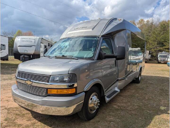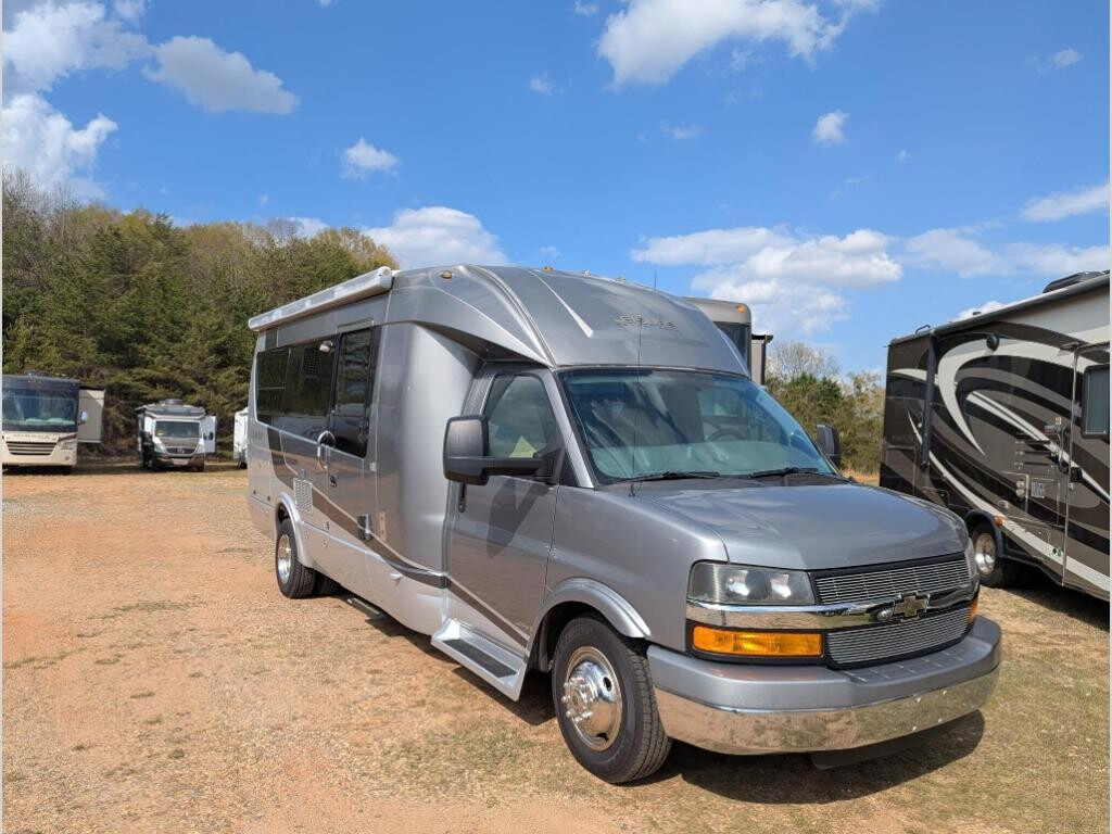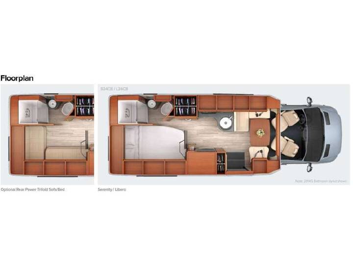 Smart meets Stylish. Inspired by the automotive industry, the Serenity and Libero s curved, fiberglass body construction is designed for strength and durability. Sleek exterior lines were aerodynamically engineered to diminish wind noise and boost fuel economy. The end result is one of the most beautiful and unique looking RV s on the road today. Highlights Gorgeous cherry or sierra maple solid wood cabinetry provides an incredible amount of interior storage for a 24 motorhome Galley features a deep stainless steel sink, 2-burner cooktop and 6.4/7 cu.ft. 3-way fridge/freezer Three-piece dry bathroom features stand-up shower, china toilet and vanity with Corian® countertop Low profile exterior measures just over 10 in height Sleek, stylish and aerodynamic design is unlike anything in the industry commands a double-take