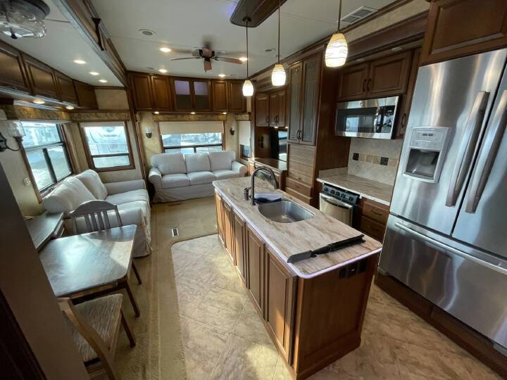 Also Includes: * KING SIZE BED * AM/FM/CASSETTE STEREO * ELECTRIC WATER HEATER * PATIO AWNING * OUTSIDE SHOWER * GRAB HANDLE * 3 SLIDE OUTS * HOUSEHOLD REFRIGERATOR * REAR LIVING ROOM * CENTER KITCHEN * SIDE AISLE BATH W/SHOWER * FREE STANDING DINETTE * SOFA OVERHEAD COMPARTMENTS * MICROWAVE * 3 BURNER STOVE * SKYLIGHT ABOVE TUB * CEILING FAN * OVEN * FIREPLACE * REAR LADDER
