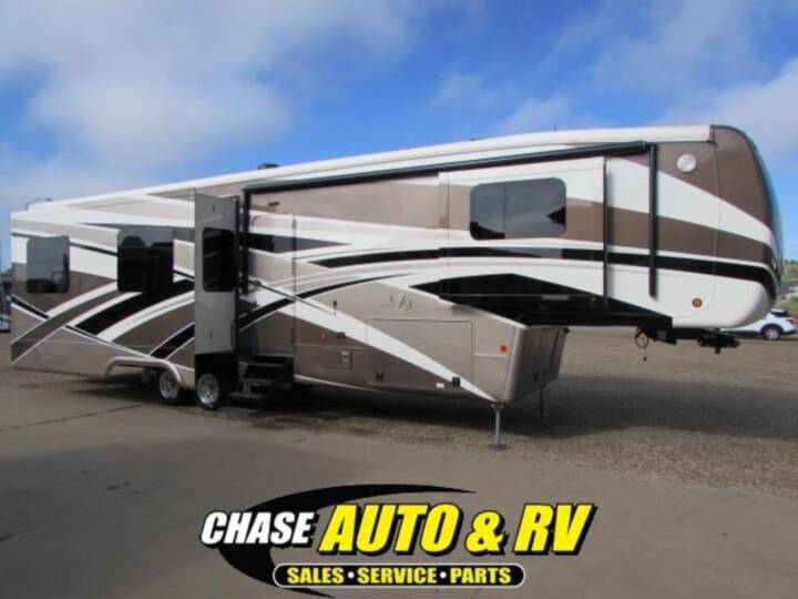 This Mobile Suites fifth wheel 38 RSSA by DRV Suites offers quadruple slide outs for added interior space, a rear living layout, king bed, kitchen island, and so much more!