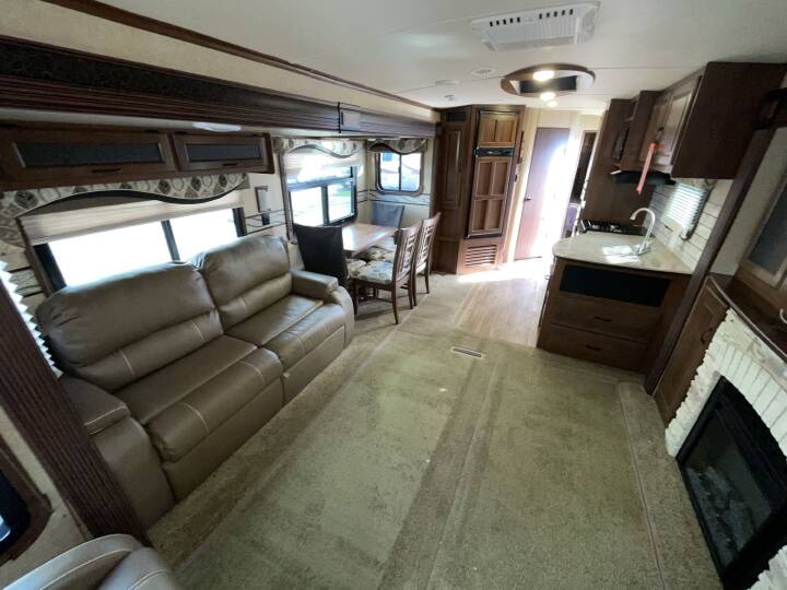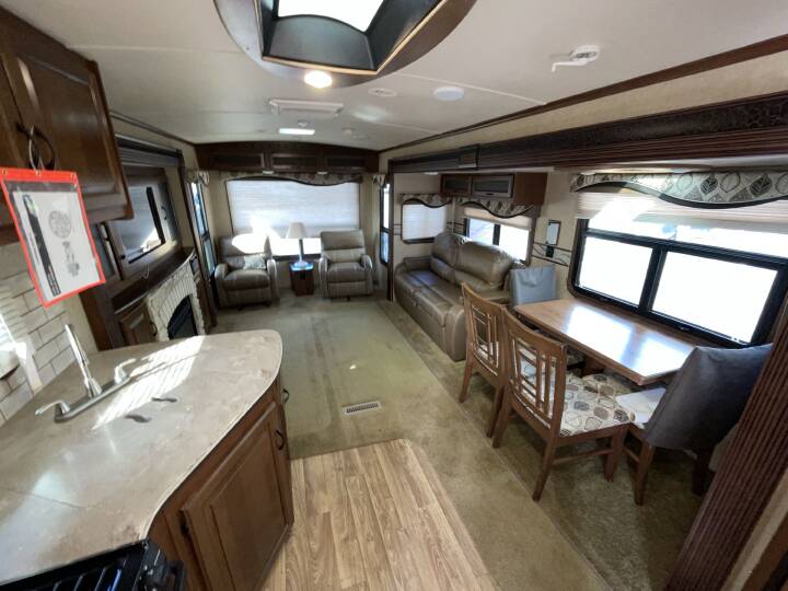 Also Includes: * POWER TONGUE JACK * FRONT & REAR STABILIZER JACKS * 2 SLIDE OUTS * AC * CENTER KITCHEN * BOOTH DINETTE * OVEN * 3 BURNER STOVE * MICROWAVE * FIREPLACE * REAR LIVING ROOM * TV * PATIO AWNING