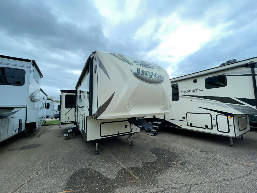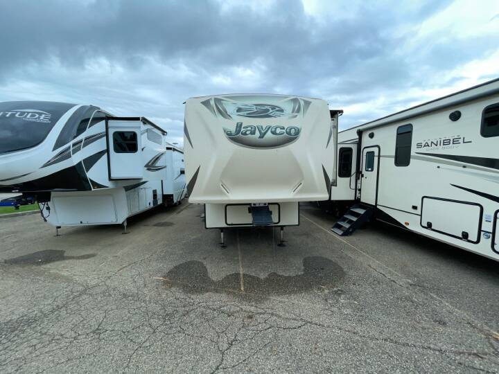 This Fifth-Wheel sleeps 4 people and is available at Camping World in AKRON, OH.