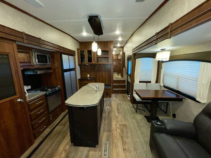 Specs: Length: 36.92' | Weight: 10000.0 lbs | Slide Outs: 3 | Sleep Number: 4 | Exterior Height: 12.92' | Fresh Water Tank: 75.0 gal | Black Water Tank: 50.0 gal