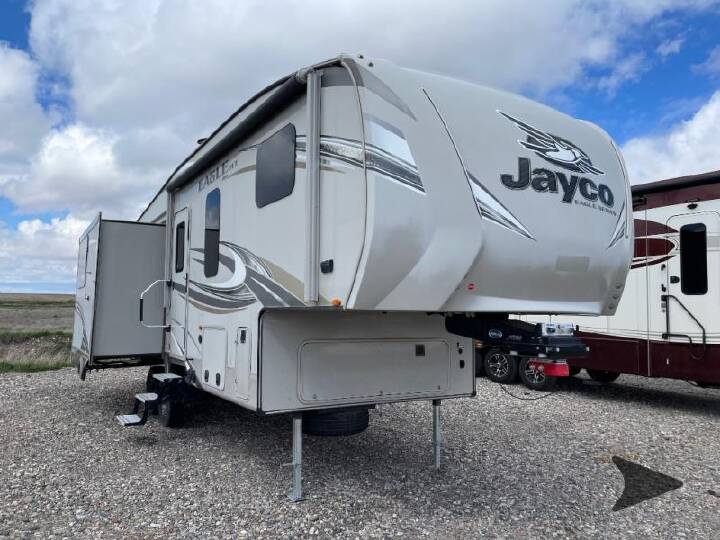2016 Jayco Eagle 338 RETS, , Basic Information - Year: 2016, Basic Information - Make: Jayco, Basic Information - Model: Eagle, Basic Information - Trim: 338 RETS, Interior - Interior Color: Y, Basic Information - Stock Number: 44397G, Basic Information - VIN: 1UJBJ0BU2G1CD0101, Basic Information - Condition: Used, Basic Information - Dry Weight: 9465, Basic Information - Type: Fifth Wheel, Basic Information - Sleeping Capacity: 8, Basic Information - Length (Feet): 39.2, Basic Information - Construction Body Material: Aluminum, Basic Information - Sidewall Construction: Fiberglass, Basic Information - Dry Weight (kg): 4293.3, Basic Information - Dry Weight (lbs): 9465, Bedroom / Bath - Bathroom, Bedroom / Bath - Bathroom Flooring Type: Vinyl, Bedroom / Bath - Bathroom Location: Center, Bedroom / Bath - Bathroom Medicine Cabinet, Bedroom / Bath - Bathroom Mirror, Bedroom / Bath - Bathroom Vent / Fan System, Bedroom / Bath - Full Size Master Bedroom Closet, Bedroom / Bath - Master Bedroom, Bedroom / Bath - Master Bedroom Door Style: Conventional Door, Bedroom / Bath - Master Bedroom Flooring Type: Carpet / Vinyl, Bedroom / Bath - Master Bedroom Location: Front, Bedroom / Bath - Master Bedroom Mirror Doors, Bedroom / Bath - Number Of Bathrooms: 1, Bedroom / Bath - Number Of Queen Size Beds: 1, Bedroom / Bath - Shower, Bedroom / Bath - Shower Door Type: Plastic / Glass, Bedroom / Bath - Toilet, Bedroom / Bath - Toilet Type: Porcelain, Cargo / Storage - Pass-Thru Storage, Comfort - Air Conditioning (BTUs): 15,000, Comfort - Fireplace, Comfort - Heater, Comfort - Sofa, Comfort - Recliners / Rockers, Comfort - Number Of Sofas: 1, Comfort - Number Of Recliner / Rockers: 2, Comfort - Number Of Convertible / Sofa Beds: 2, Comfort - Air Conditioning Type: Automatic, Comfort - Recliners / Rockers Material: Vinyl, Comfort - Sofa Material: Vinyl, Comfort - Heater Type: Automatic, Convenience - Power Vent Fan, Convenience - Sky Light, Convenience - Roof Vents, Convenience - Leveling Jack Type: Front Power / Rear Power, Drivetrain - Number Of Axles: 2, Electrical / Generator - Exterior Plugs, Electrical / Generator - Ground Fault Plugs, Electrical / Generator - Battery, Electrical / Generator - Voltage Meter, Electrical / Generator - Water Pump Power Display, Electrical / Generator - Air Conditioning Prewiring, Electrical / Generator - Heat Prewiring, Electrical / Generator - Battery Power Converter, Entertainment - CD Player, Entertainment - CD Number Of Discs: 1, Entertainment - DVD Player, Entertainment - Television, Entertainment - Radio, Entertainment - Speakers, Entertainment - TV Antenna Prewiring, Entertainment - Cable Prewiring, Entertainment - Surround Sound, Entertainment - Satellite Prewiring, Entertainment - Number Of Radios: 1, Entertainment - Number Of Televisions: 1, Entertainment - Speaker Location(s): Interior / Exterior, Exterior - Exterior Flood Lights, Exterior - Exterior Ladder, Exterior - Exterior Shower, Exterior - Retractable Roof