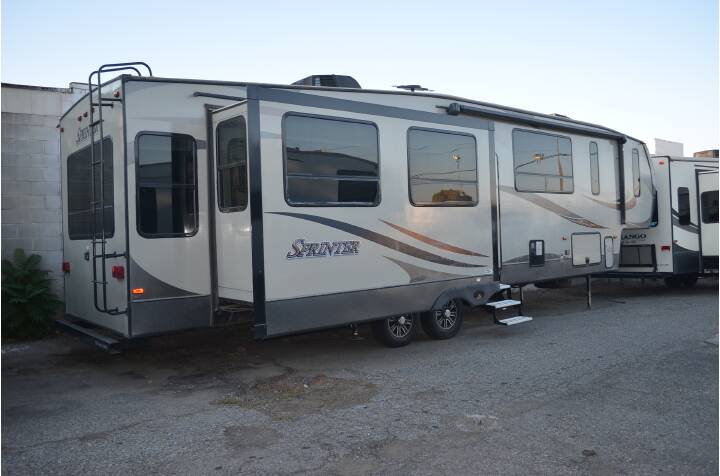 2016 Keystone Sprinter 2 Bedroom with Loft #347FWFLT 38.6ft , 4 slides , 2 AC Units , Auto Leveling , Rear Living with fireplace , 2 massage recliners , reclining couch , center kitchen with island sink , 3 burner stove/oven , dinette table , 2nd bedroom -or- Living area with couch (bed) TV , Uper Loft in hallway sleeps 2 , full private bathroom with big Walkin shower , front master bedroom with walk around queen bed & TV , $29,800+tax & licensing + doc fee can be seen at 211 west Columbia dr in Kennewick , 509-582-0923 (DEALER) www.uzedrvs4u.com