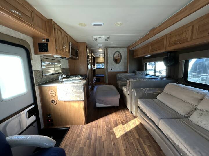 Also Includes: * FRONT LIVING ROOM * REAR HITCH * REAR LADDER * 2 SLIDE OUTS * DOUBLE SLIDE TOPPERS * ALUMINUM WHEELS * BATTERY * GRAB HANDLE * FULL BODY PAINT * SINGLE DOOR REFRIGERATOR * BOOTH DINETTE * CENTER KITCHEN * CONVECTION/MICROWAVE OVEN * 3 BURNER STOVE * SWIVEL CHAIR * HIDE-A-BED SOFA * SKYLIGHT ABOVE TUB * SOFA OVERHEAD COMPARTMENTS * MIRRORED WARDROBE * FULL REAR WARDROBE * DELUXE CABINETS * TV ANTENNA * REAR QUEEN BED * BATTERY DISCONNECT * 50 AMP SERVICE * DUAL DUCTED AC * GENERATOR * TILT STEERING WHEEL * CRUISE CONTROL * POWER WINDOWS & LOCKS * POWER DRIVER SEAT * REAR CAMERA * BUNK OVER CAB * POWER PASSENGER SEAT * DOUBLE BUNKS * ELECTRIC WATER HEATER * GAS/ELEC. WATER HEATER W/DSI * AUTO LEVELING SYSTEM * FIBERGLASS EXTERIOR