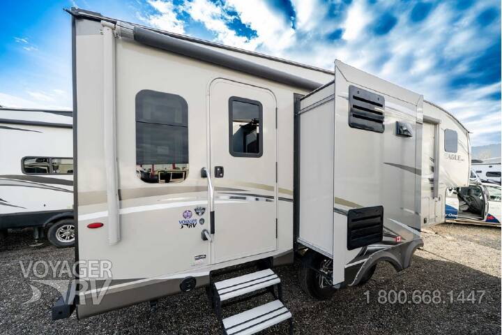Ducted Air ConditioningFantastic FanFurnacePleated Window ShadesDay/Night ShadesBathroom SkylightAM/FM/CD/DVD Player Stereo System w/Bluetooth2 LCD TVs6 Gal Gas/Electric Water Heater w/DSIBathroom: Stand Up Shower w/FF Toilet2 Door 3 Way FridgeConvection MicrowaveStove w/Oven Queen Island BedAluminum Rims16" WheelsPower Awning w/LED LightsEnclosed UnderbellyExterior SpeakersFiberglass ExteriorHeated TanksLP Quick Connect for BBQRoof LadderOutside ShowerSpare TireTV AntennaDual Pane WindowsElectric Brakes4 Manual Stabilizer JacksPower Front Landing Gear3 Slide Outs1 Slide TopperSleeps 6Full PropaneNew BatteryNo Dealer Fees!