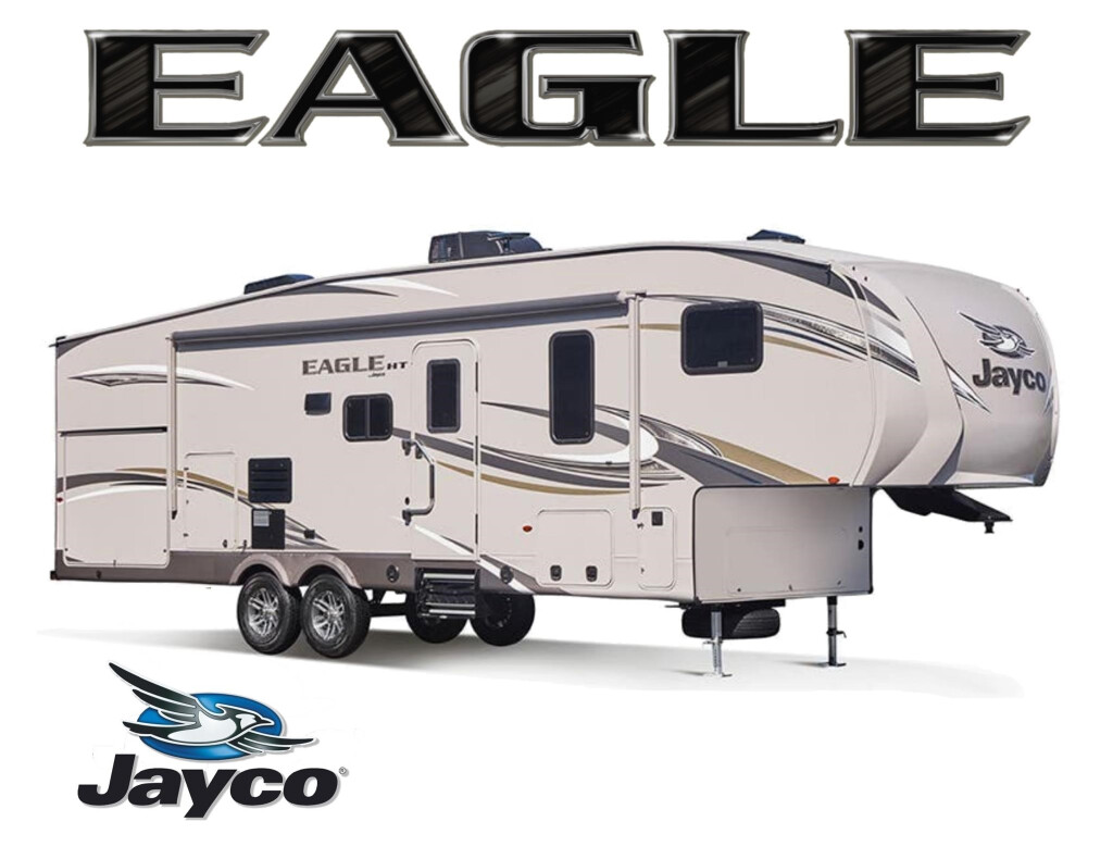 2017 JAYCO EAGLE 27.5RLTS, ****STK#: CW19060.**** The Jayco Eagle HT 5th wheel trailers give you more than you expect. Take construction for example... StrongholdVBL aluminum framed and vacuum bond laminated gelcoated fiberglass exterior walls (including rear wall and slide room end walls) Magnum Truss Roof System (strongest tested roof in the industry) with one piece, seamless DiFlex II material Climate Shield zero-degree tested weather protection: - Fully enclosed and heated underbelly (ducted). The Eagle chassis uses one-piece structural steel I-beams instead of welded together versions that could warp. Standard on every Eagle trailer are slide-outs running on rack-and-pinion electric drives. There is nothing quite like the spacious elegance inside an Eagle. This Eagle 27.5RLTS is a 30' 11", triple slide-out, rear living, mid kitchen floorplan including 2 opposing slide-outs that gives you a very spacious living area, a front master bedroom with a side isle bathroom for privacy completes the layout. Other features include electric patio awning, microwave oven, lots of counter space, stereo, queen walk around bed,15k BTU roof A/C, roof access ladder, and more.