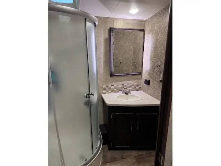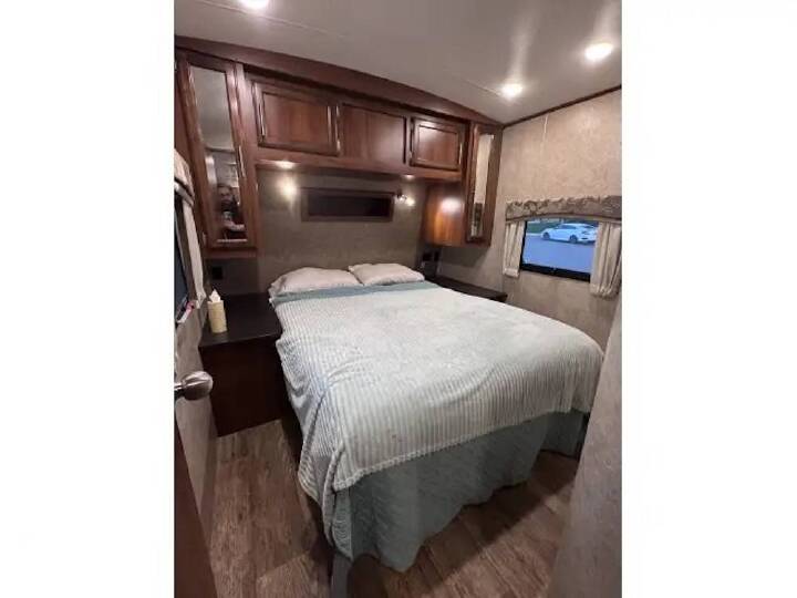 You have questions? We have answers. Call us at (941) 200-1260 to discuss this RV today. Cabinets (Included), Double Kitchen Sink (Included), Exterior Kitchen (Included), Hood Fan (Included), Kitchen Island (Included), Microwave (Included), Oven (Included), Pantry (Included), Refrigerator/freezer (Included), Stove (Included), Bluetooth/aux. (Included), CD Player (Included), Entertainment Center (Included), Interior Lighting (Included), Stereo System (Included), TV (Included), Air Conditioning (Included), Bathroom Sink (Included), Bed - Queen (Included), Bed - Twin (Included), Ceiling Vents (Included), Central Heat (Included), Dinette S