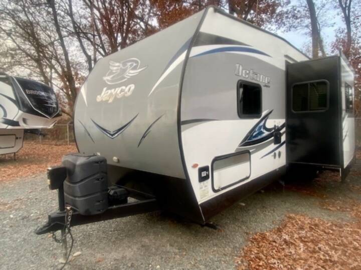 2017 Jayco Octane 32C, Actual photos of 2017 Jayco Octane 32C (stock 61601C). Contact us today for more information!, Basic Information - Year: 2017, Basic Information - Make: Jayco, Basic Information - Model: Octane, Basic Information - Trim: 32C, Interior - Interior Color: Y, Basic Information - Stock Number: 61601C, Basic Information - VIN: 1UJBJSBS6H1VC0057, Basic Information - Condition: Used, Basic Information - Type: Toy Hauler - Travel Trailer, Basic Information - Sleeping Capacity: 8, Basic Information - Length (Feet): 0, Basic Information - Construction Body Material: Aluminum, Basic Information - Sidewall Construction: Fiberglass, Bedroom / Bath - Bathroom, Bedroom / Bath - Bathroom Flooring Type: Vinyl, Bedroom / Bath - Bathroom Location: Center, Bedroom / Bath - Bathroom Mirror, Bedroom / Bath - Bathroom Vent / Fan System, Bedroom / Bath - Master Bedroom, Bedroom / Bath - Master Bedroom Flooring Type: Vinyl, Bedroom / Bath - Master Bedroom Location: Front, Bedroom / Bath - Number Of Bathrooms: 1, Bedroom / Bath - Shower, Bedroom / Bath - Toilet, Bedroom / Bath - Toilet Type: Plastic, Cargo / Storage - Cargo Area Auxiliary Gas Tank, Cargo / Storage - Cargo Area Auxiliary Gas Tank Capacity (gal): 40, Cargo / Storage - Cargo Area Auxiliary Gas Tank Capacity (lbs): 151.4, Cargo / Storage - Cargo Area Dimensions, Cargo / Storage - Cargo Area Height (in): 94, Cargo / Storage - Cargo Area Height (mm): 2387.6, Cargo / Storage - Cargo Area Rear Door, Cargo / Storage - Cargo Area Rear Door Style: Ramp Door, Cargo / Storage - Cargo Area Storage Cabinets, Cargo / Storage - Cargo Area Tiedown / Tracks, Cargo / Storage - Cargo Area Tool Chest / Storage Area, Cargo / Storage - Cargo Area Width (in): 96, Cargo / Storage - Cargo Area Width (mm): 2438.4, Cargo / Storage - Diamond Plated Cargo Area Finish, Cargo / Storage - Soft Cargo Wall, Comfort - Air Conditioning (BTUs): 13,500, Comfort - Heater, Comfort - Sofa, Comfort - Air Conditioning Type: Automatic, Comfort - Sofa Material: Vinyl, Comfort - Heater Type: Automatic, Convenience - Sky Light, Convenience - Roof Vents, Convenience - Leveling Jack Type: Front Manual / Rear Manual, Drivetrain - Number Of Axles: 2, Electrical / Generator - Exterior Plugs, Electrical / Generator - Ground Fault Plugs, Electrical / Generator - Battery, Electrical / Generator - Voltage Meter, Electrical / Generator - Water Pump Power Display, Electrical / Generator - Air Conditioning Prewiring, Electrical / Generator - Heat Prewiring, Electrical / Generator - Battery Power Converter, Entertainment - CD Player, Entertainment - CD Number Of Discs: 1, Entertainment - DVD Player, Entertainment - Radio, Entertainment - Speakers, Entertainment - TV Antenna Prewiring, Entertainment - Cable Prewiring, Entertainment - Satellite Prewiring, Entertainment - Number Of Radios: 1, Entertainment - Speaker Location(s): Interior / Exterior, Exterior - Exterior Flood Lights, Exterior - Exterior Ladder, Exterior - Exterior Shower, Exterior