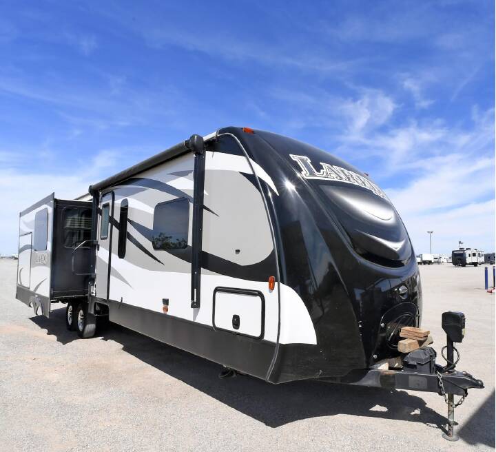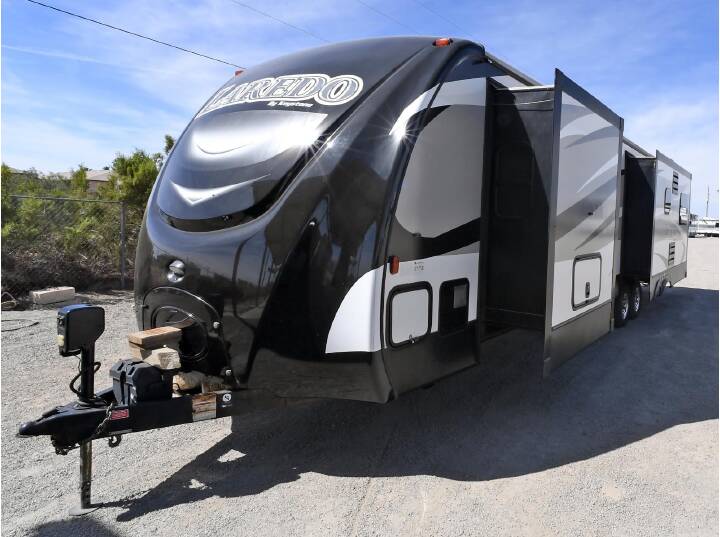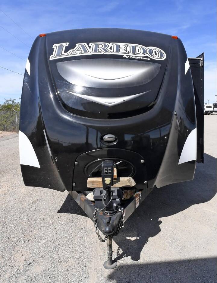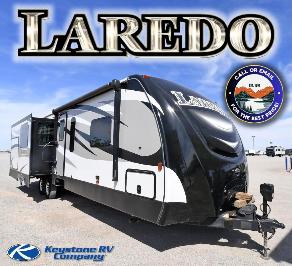 2017 KEYSTONE RV CO LAREDO 330RL, ****STK#: CW18940B.**** Enjoy the Life Sized Camping Experience. The amenities in your home are life sized. And they should be like that in your camper, too. Laredo doesn t settle for smaller RV sized features. Instead we make them life sized the way you are used to. Laredo enhances your camping experience by giving you the perfect combination of features, floor plans, and value. Couple Laredo s Life Sized features with industry leading quality and customer service and sacrifice nothing in your home away from home. The Laredo 330RL is a 37' rear living model travel trailer that features 2 opposing slide-outs in the living room giving this trailer an enormous amount of living space. A large 40" LCD TV, fireplace, and free standing dinette table make this a very cozy place to relax. The kitchen features an island sink and lots of storage and counter space. Other features on this 2 slide-out trailer include roof AC, electric patio awning, exterior stereo speakers, exterior BBQ grill hook-up, aluminum wheels, power tongue jack, LCD TV, Stereo-CD-DVD-MP3, and more.