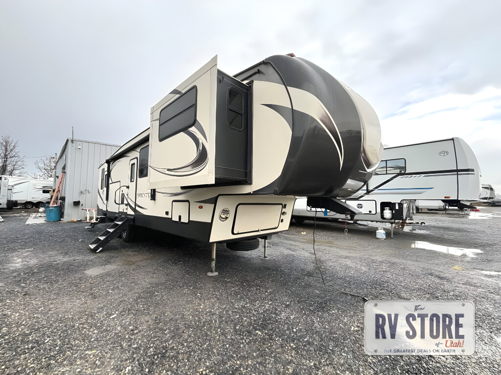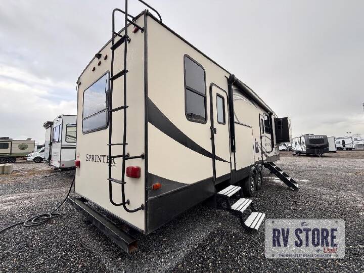 If you are looking for inside and outside cooking and entertainment, dual entry for convenience, a bath and a half, and luxury camping then take a look at this Keystone Sprinter fifth wheel.