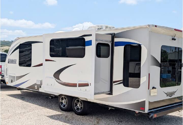 A ncie clean 1-Slide trailer with Power Awning, Power Tongue Jack & Stabilizer Jacks, 2-Way Water Heater, Booth Dinette, 2-Door Fridge, Microwave, Stove & Oven, Front Bedroom, 2-Doors, Lots of Storage, TV, Stereo, Satelite , Roof Air, Furnace, 30-amp Service, and much more.