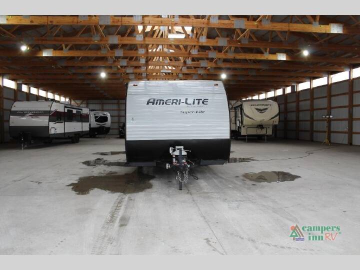When you own this Ameri-Lite Super Lite travel trailer, you own an affordably-priced and easy-to-tow trailer. This unit has enough space to sleep five adults comfortably anytime that you are on the road, and with the inclusion of the 2-burner cooktop, you will find it effortless to prepare dinner for you and all of your guests. Gulf Stream has included in this trailer all of the essential amenities you would expect, such as a private bathroom, a queen-sized bed, and a booth dinette, but they have also included fun and extra amenities like the kitchen backsplash and the bathroom skylight. This Gulf Stream travel trailer has been built with your safety in mind, giving you one less thing to worry about while you travel. The wall-mounted fire extinguisher will give aid during an emergency, and the LP leak detector and smoke detector will warn you against a potential emergency so that you can keep your focus on the fun at hand. The safety glass windows are a perfect way for you to enjoy a glimpse of the outdoors from inside the trailer, but they are also a wonderful protection from straying debris and broken glass. As you relax on your vacation and enjoy the great outdoors, you can feel extra confident knowing that this trailer will remain safe because of the included one-year warranty on all Super Lite structural components.