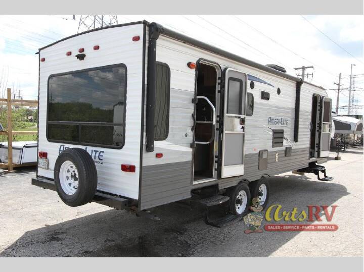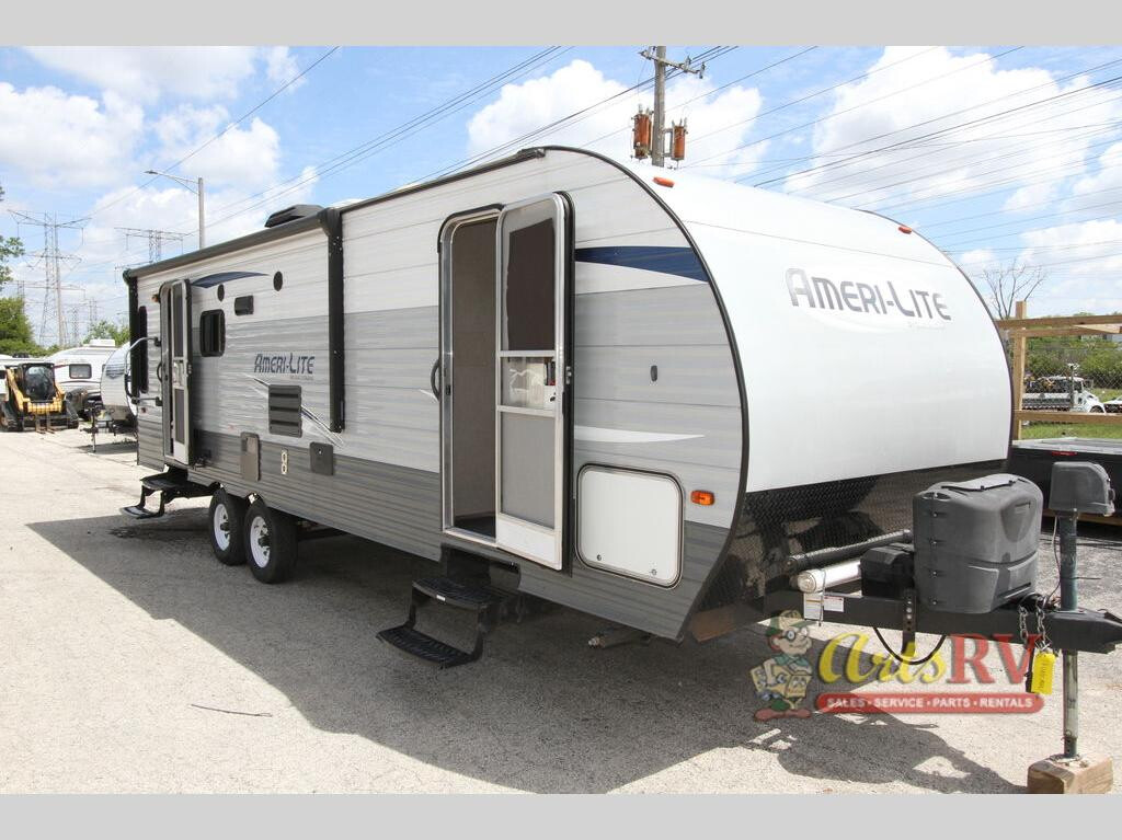 When you take a trip in this Ameri-Lite Ultra Lite travel trailer, you are taking a trip in a reliable and fuel-efficient vehicle. Even though this trailer is light weight, it is not short on usable space. From the large walk-through bathroom and two entry/exit doors, to the private bedroom and sleeping space for four, this trailer gives you what you need where you need it. When you own this Gulf Stream travel trailer, you own a product that simply is built better. You can safely trust the integrity of this structure because it has been crafted with galvanized steel straps, a one-piece seamless roof, and aluminum siding with baked enamel finish, and if that isn't enough to calm your fears, this trailer comes backed with a 2-year warranty on all structural components. Gulf Stream has taken extra precautions to ensure your safety on the road by including such amenities as the wall-mounted fire extinguisher, LP leak detector, and smoke detector.