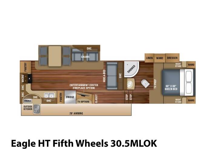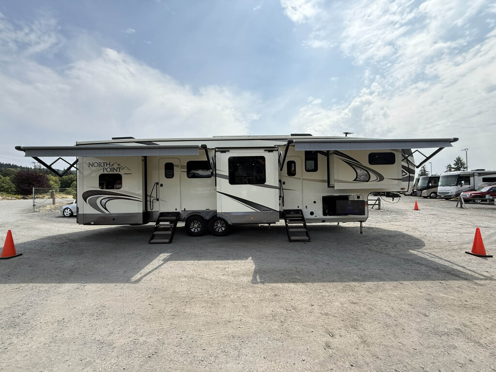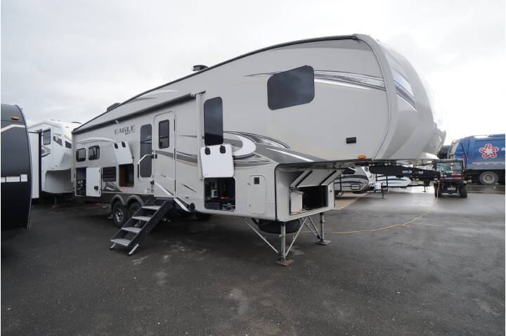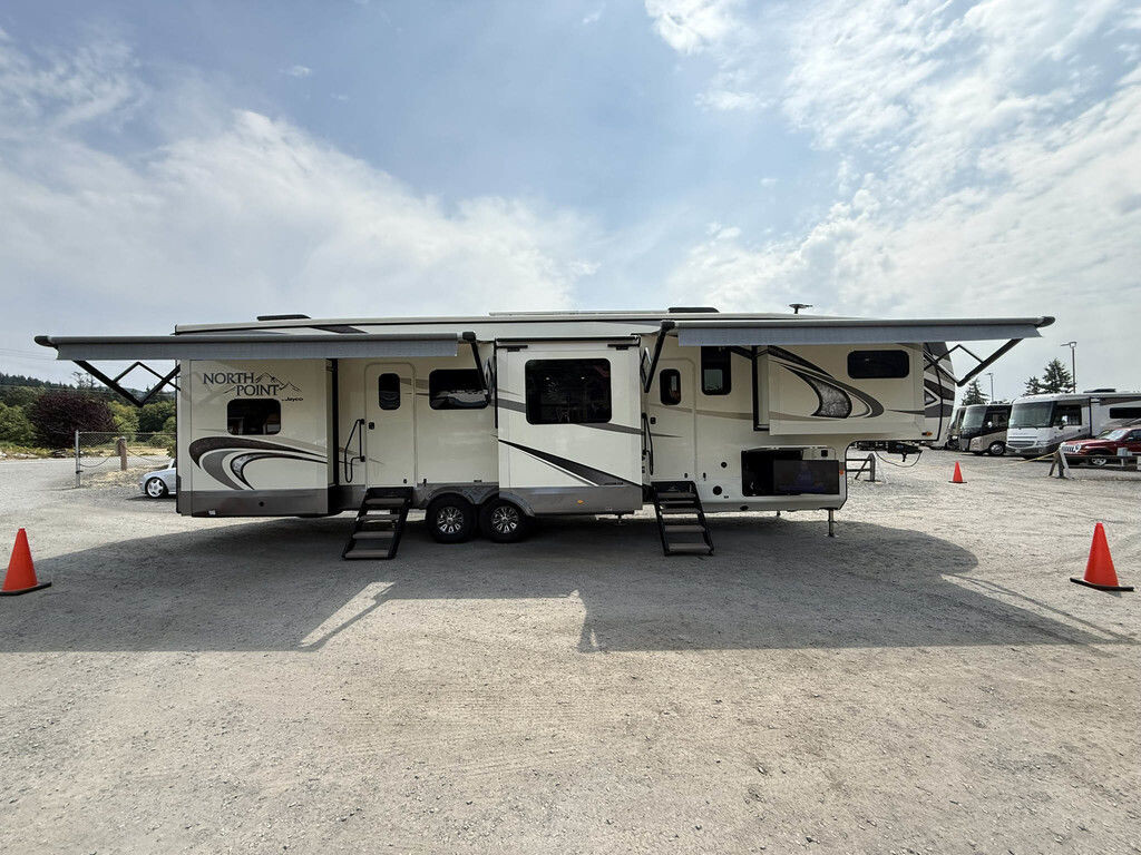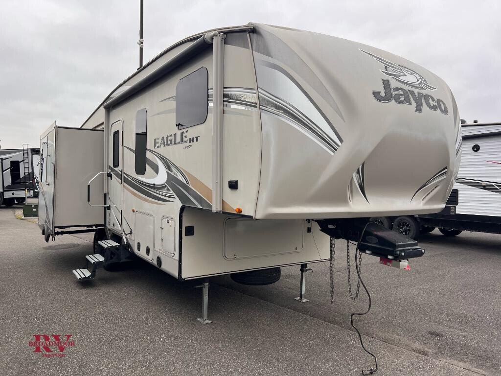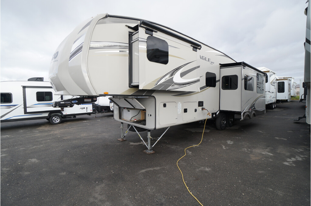 2018 Eagle 30.5MLOK2018 Jayco Eagle Fifth Wheel Model 30.5MLOKON-THE-ROAD LUXURY equipped for Off-The-Grid-Camping!Spacious floorplan, a well maintained RV, and numerous options and upgrades, including the front stabilizer bars for the front jack, four 100 watt solar panels, large 200ah lithium battery, 3000 inverter, second fresh water tank, and a grinder waste disposal system for more options in dumping your black tank. Renogy solar system and bluetooth battery for easy monitoring. This trailer is in great condition. Couples rear living room layout. Outdoor TV. Outdoor cook space with fridge, storage and a quick connect for a propane cook top. Includes back up camera, and rear hitch for a bike rack. Beautiful interior, nice and clean. Slideout has the comfy kick back theatre seating and a free standing table with 2 padded chairs, plus 2 folding chairs for your company. Sofa bed against the bathroom wall, converts into sleeping for 1 or 2. Coat closet handily situated by the entry door. Rear wrap around kitchen with lots of beautiful counter top and storage space. Two way, propane and electric, 4 door fridge and freezer. TV with electric fireplace below it. The front bedroom has the second slideout, with a walk around north south queen bed and a slideout wardrobe and low dresser that works great for a seat to put on your shoes. Great end tables on each side of the bed, with plugs. Hallway joins into the washroom from the bedroom, with closets all along. Curved door glass door shower with skylight. Beautiful and well lit washroom with sink, counter and mirror door medicine cabinet. Come see this amazing 5th wheel at Longhaul in Listowel. Trade ins are accepted and financing is available.A full walk through video can be seen at this link: https://www.youtube.com/watch?v=n-DTXVW3DJgFeatures may include:Exterior- I-class cambered, structural steel I-beam frame- TuffShell aluminum-framed, vacuum-bonded, laminated, gelcoat fiberglass exterior walls (including rear wall and slide room end walls)- Magnum Truss Roof System with one-piece, seamless DiFlex II material- Climate Shield zero-degree-tested weather protection: Fully-enclosed and heated underbelly (ducted)- High-BTU output furnace- Double-layer fiberglass batt insulation in ceiling and floor- Double-sided radiant-barrier insulation in roof and slide room floors- High-gloss, fiberglass front cap with built-in specialty LED lighting- LED exterior lighting package- 30-amp power service with detachable Powersmart LED shore power cord- Dual 30-pound propane bottles with auto-regulator- Pass-through storage with Slam-latch baggage doors- Digital TV antenna- Exterior marine-grade speakers- Fully enclosed, LED-lit universal docking center with outside shower, city water connection & black tank flush- Independent satellite and whole-coach cable hookups- Battery disconnect- Water heater bypass- Best-in-class fr