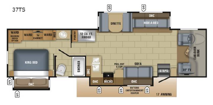 For any camping trip you will want this Jayco Seneca 37TS. This class C motor home has triple slide outs which help to open up the floor space. In the kitchen area you can easily fix your favorite meals at the three burner range, and you can store you perishables in the 12 cu. ft. refrigerator plus there is a pantry for your perishables. In the living area there are two sofas plus a 39" TV for your enjoyment. Additional sleeping room can be found at the cab-over bunk, and outside you will enjoy the shade from the 17' awning plus there is an exterior entertainment center where you can watch a movie out under the stars! Come enjoy the ride from one destination to another in a Seneca class C motor home which features a Freightliner S2RV chassis and a Cummins ISB 6.7L diesel engine. Along the exterior there is a high-gloss, gelcoat vacuum-bonded, laminated sidewalls, floor, and crowned roof, a deluxe full-body paint with Diamond Shield, plus a Winegard in-motion satellite dish. Inside there are solid-surface countertops with a decorative backsplash, linoleum flooring, a king-size bed with bedspread, plus a one-piece fiberglass shower with glass door. If the features are not enough to draw your attention, then come check out the Customer Value Package which includes a JRide Premium with a computer-balanced driveshaft, SACHS sock abosorbers, heavy-duty rear stabilizer bar, full air brakes, plus a rear air suspension, a Jayco-exclusive Garmin infotainment system, plus so much more!