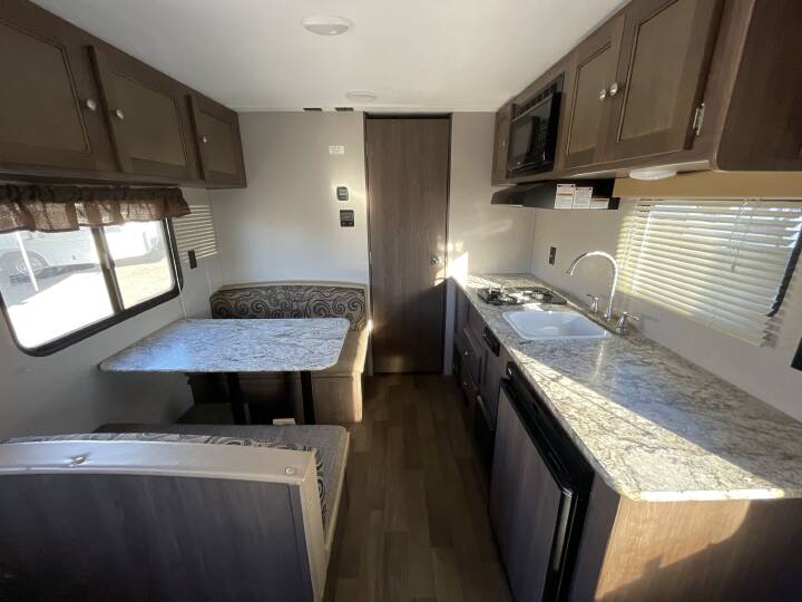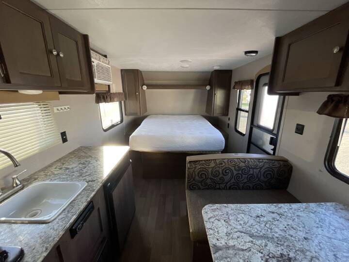 Also Includes: * FRONT QUEEN BED * BOOTH DINETTE * CENTER KITCHEN * REAR BATH/SHOWER * WINDOW AWNING * 2 BURNER STOVE