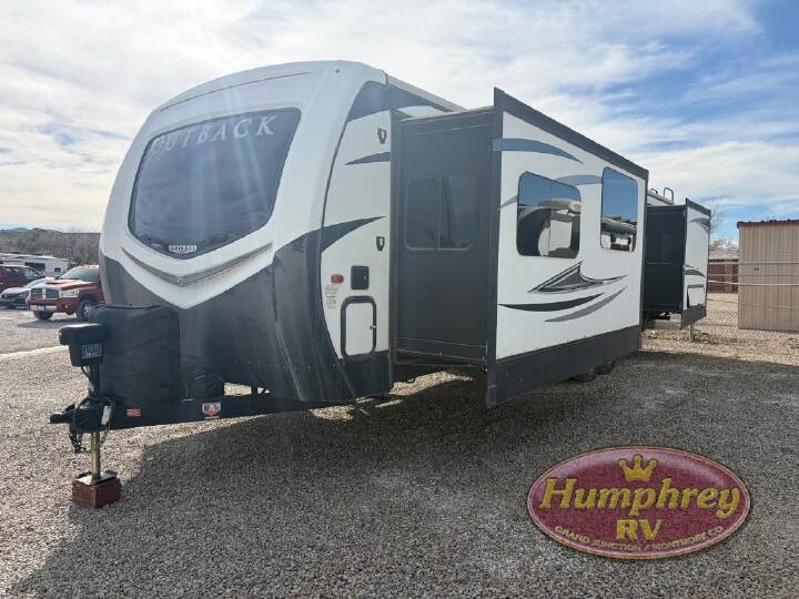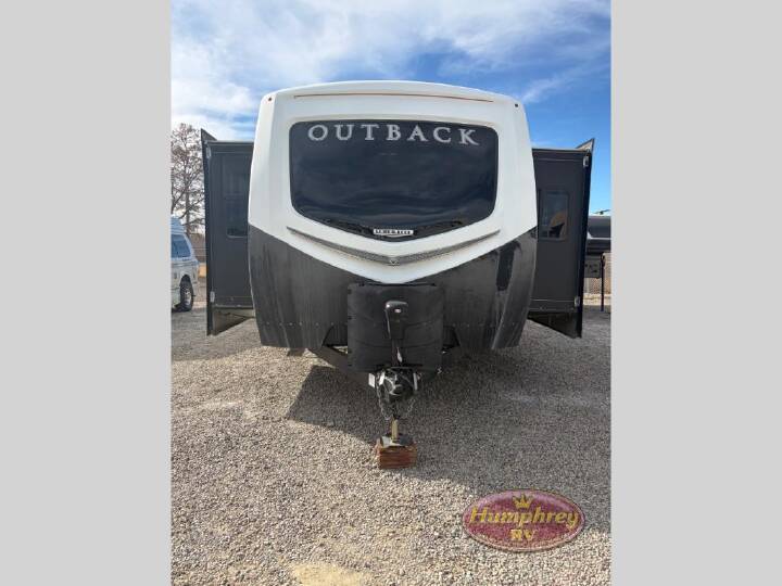 Triple slide outs, two entry doors, and a PanaView window above the front entertainment center are just a few of the features that are available on this Outback 333FE travel trailer.