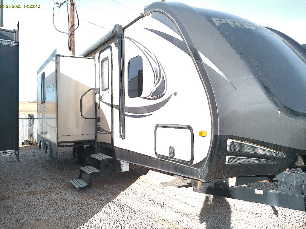 2018 Keystone Premier 24RK, Discover the 2018 Keystone RV Premier 24RK, a fantastic travel trailer that combines comfort and convenience. With a length of 29.5 ft and a dry weight of 5,465 lbs, it's easy to tow, making it ideal for weekend getaways or extended road trips. This model sleeps up to 4, ensuring a cozy space for family or friends. Enjoy the benefits of a rear kitchen layout, power awning, and two slideouts that create a spacious interior. With a powerful 30,000 BTU heater and standard air conditioning, you'll stay comfortable in any weather. Schedule your tour today!