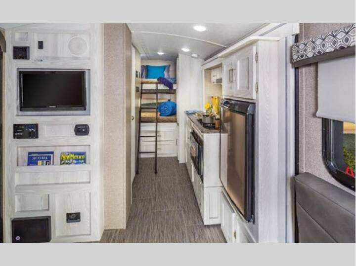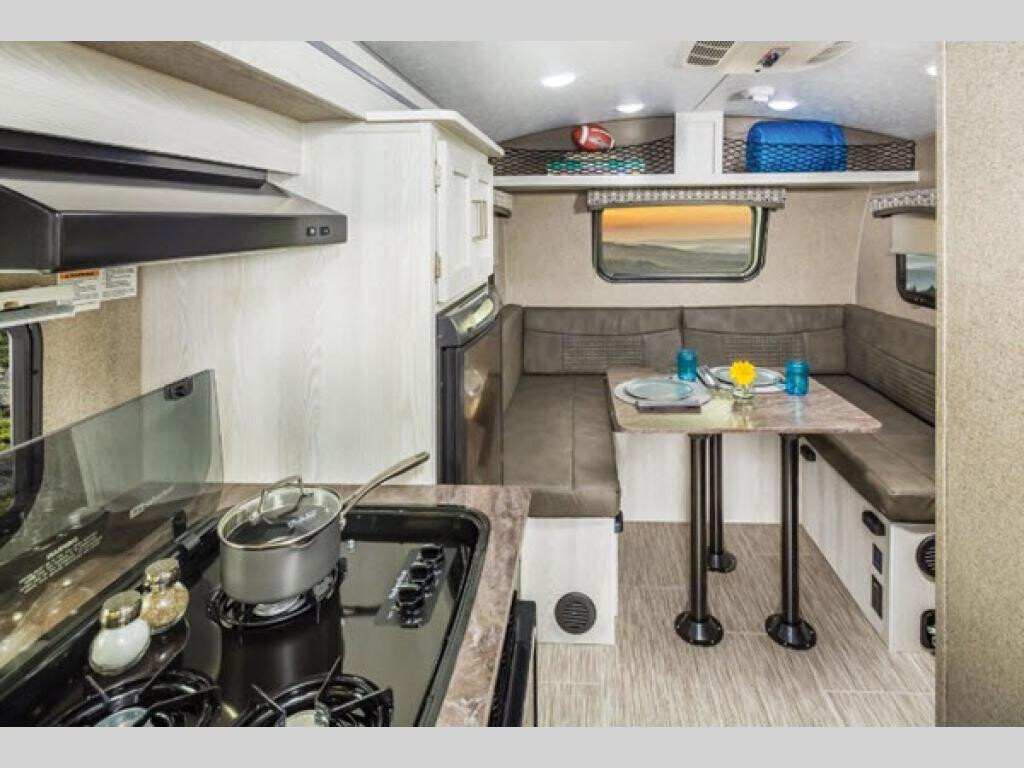 For the camping enthusiast that enjoys inside comforts but doesn't stay inside much, take a look at this Flagstaff E-Pro travel trailer today! You have the choice of sleeping on one of the two bunk beds or the U-shaped dinette when it's folded down for the night. You can cook inside on the recessed cooktop with flush-mount cover or in the microwave located on the single slide that provides more floor space to prepare meals. The full bath allows you to wash up after a fun day outdoors without having to use the campsite facilities, and you will find storage inside as well as outside, plus there is an outdoor gas grill and mini refrigerator! The Forest River Flagstaff E-Pro travel trailer and toy hauler have been built to be towed by plenty of fuel-efficient vehicles and smaller SUVs. Each model includes a WiFi Ranger WiFi Booster to enhance your WiFi and give you a secure connection wherever you land. You will also enjoy kitchen amenities, bathroom facilities, a gas/electric water heater with quick recovery, a Water-Pur filtration system, and exterior speakers to keep the party going all weekend long. Come choose your favorite Flagstaff E-Pro and start exploring the world!
