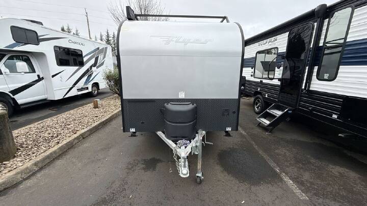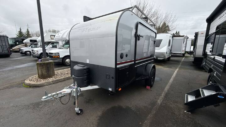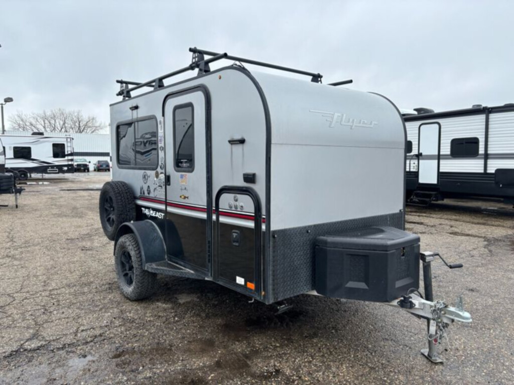 2019 Intech RV Flyer EXPLORE, The 2019 Intech RV Flyer Explore is a versatile and rugged pop-up travel trailer designed for adventure enthusiasts who love to explore the great outdoors. This used RV is built with durability and functionality in mind, making it an ideal choice for those who enjoy off-the-grid adventures and need a reliable toy hauler to carry their gear. The exterior of the Intech RV Flyer Explore is constructed with a welded all-aluminum tube frame, ensuring a lightweight yet robust structure. The seamless aluminum panels and roof provide excellent protection against the elements, while the lower exterior stoneguard adds an extra layer of defense against road debris. The trailer is equipped with 15-inch aluminum wheels and a spare tire, ensuring you are well-prepared for any journey. The load ramp, rated at 2200 pounds, and six 500-pound tie-down rings make it easy to transport and secure your toys and equipment. Inside, the Flyer Explore offers a practical and comfortable living space. The black coin flooring is both stylish and easy to clean, while the four LED dome lights provide ample illumination. The MaxxAir vent fan ensures proper ventilation, keeping the interior fresh and comfortable. For added convenience, the trailer includes an 8.5-gallon fresh water option and a slideout kitchen option, allowing you to enjoy home-cooked meals on the road. The interior is designed with functionality in mind, featuring: - One 12v outlet and two USB ports for charging devices - A Bluetooth stereo with two speakers for entertainment - Cabinet storage with three storage nets for organizing your belongings - A front overhead storage cubby for additional storage space The mechanical features of the Flyer Explore are designed to support off-grid adventures. It comes solar prep-ready, allowing you to harness solar energy for extended trips. The trailer is equipped with one 20-pound LP bottle, a 30-amp load center, two 120v receptacles, and a 35-amp converter to power your appliances and devices. The 11k soft start AC unit ensures you stay cool and comfortable, even in warmer climates. Overall, the 2019 Intech RV Flyer Explore is a well-equipped and durable travel trailer that caters to the needs of outdoor enthusiasts. Its thoughtful design and robust features make it a reliable companion for your next adventure. Whether you're heading to the mountains, the beach, or the desert, this RV is ready to take you there with ease and comfort.