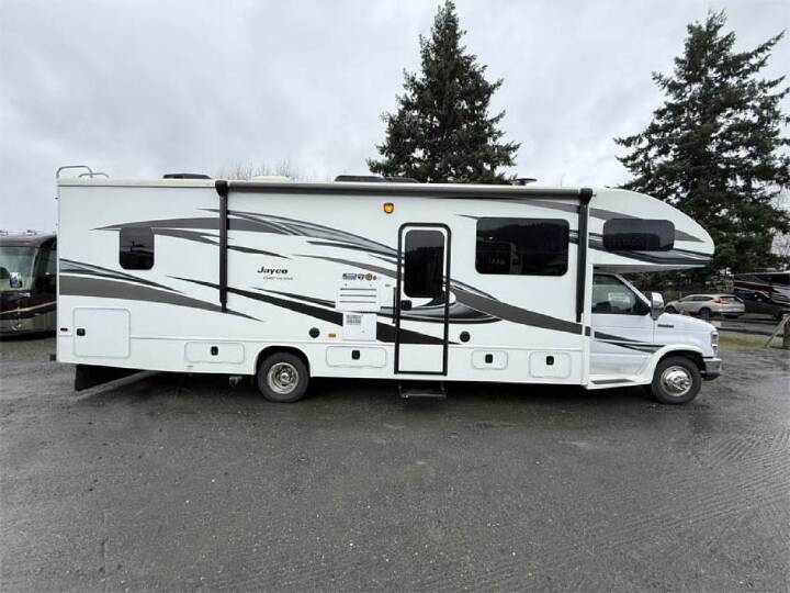 USED 2019 JAYCO REDHAWK 24B – 355147, Jayco Redhawk 24B class C gas motorhome highlights: Cab-Over Bunk U-Shaped Dinette Rear Corner Bath Pantry/Wardrobe Enjoy camping the right way, inside this Jayco Redhawk 24B motorhome! You can easily get squeaky clean in the rear corner bath with the 30" x 36" shower, and keep your essentials handy inside the medicine cabinet. If you have prepared too much of a delicious meal, no worries! You can conveniently store the leftovers inside the 8 cu. ft. double door refrigerator and enjoy them once again. There are lots of overhead cabinets for you to bring along all of your camping necessities and there is even outside storage too. If you want some fresh air but don't want to get a sunburn, then grab a chair and your favorite drink, and head underneath the 16' electric patio awning! With any Jayco Redhawk class C gas motorhome you will get reliability and value on the open road. From the molded, seamless fiberglass front cap protecting you from the wind and rain, and the JRide package for the ultimate driving experience, to the rear backup camera that feeds directly to your in-cab monitor to help you reverse with more visibility, you will find satisfaction for years to come. Inside, you can stand tall with a seven-foot ceiling height, cook your meals at the three-burner range with 9,000 BTU SuperBurner and piezo igniter plus convection microwave (n/a 31XL), plus dine at the Jayco-exclusive easy operation, legless dinette table. Come see why you should own a Redhawk motorhome today!