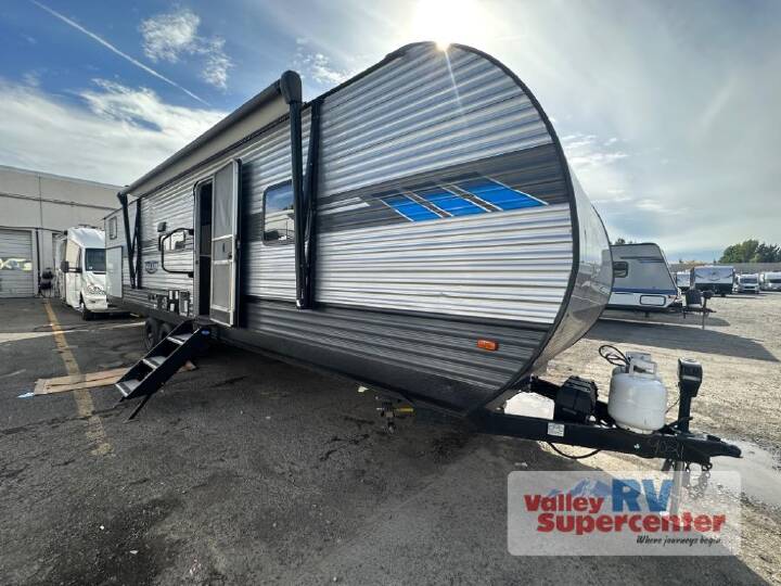 USED 2020 FOREST RIVER FLAGSTAFF E PRO E12SRK - 342079, Forest River Flagstaff E-Pro travel trailer E12SRK highlights: - 74" Gaucho - TV with DVD Player - Wardrobe - Power Tongue Jack - Roof-Mount Solar Panel Get up and go at a moment's notice with this Flagstaff E-Pro travel trailer! You will be thrilled to find so many conveniences packed into this compact and portable unit. The outdoor kitchen will give you a chance to breath in the fresh air while you cook up dinner each night, and the exterior storage will allow you to bring along coolers, lawn chairs, plus other fun camping equipment. And the 74" gaucho will be a comfortable place to read a book during the day and a relaxing bed for two at night.