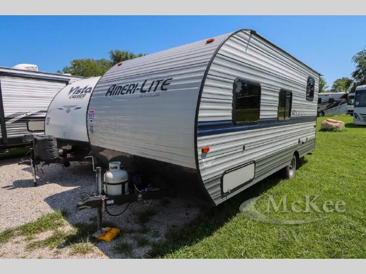 When you own this Ameri-Lite Super Lite travel trailer, you own a trailer that gives you ample storage space at an affordable price. With its compact design, this trailer is easy to tow yet full of living space. The bunk beds, the booth dinette, and the queen-sized bed allow this unit to sleep five adults comfortably while still leaving room for things like the private bathroom. The two burner cooktop and microwave oven allow you to prepare meals each day, and the power awning gives you the ability to enjoy the great outdoors without experiencing the sun's harmful rays. If you're looking for an affordable, lightweight travel trailer, you've found it in the Ameri-Lite Super Lite by Gulf Stream. These models may be lighter in weight, but they don't skim out on comfortable features. Each unit includes high-performance vinyl flooring throughout, a white kitchen sink, craft-made cabinetry with designer pulls, plus fabric-wrapped box valances to make you feel right at home. The 16,000 BTU furnace and 13,500 BTU A/C will keep you comfortable in any season, and each model includes multiple USB ports for your tablet and phone, and a 6' 8" ceiling height for added space. You can't go wrong with an Ameri-Lite Super Lite travel trailer. Choose your favorite floorplan today!