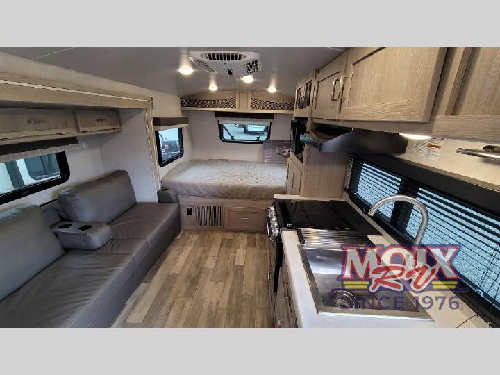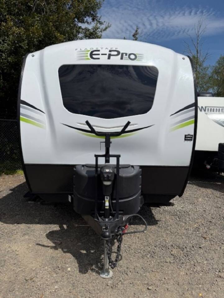 Camp with your favorite person in this trailer with the versatile Murphy bed/sofa combo up front giving you both a living area and a bedroom when you so choose. If you need sleeping space for one more, the dinette will provide that once easily setup. The large window gives you great views while dining or playing games, and the front windshield gives you more views. There is extra floor space in this trailer with the kitchen slide out that offers full amenities plus a sink to keep everything clean. And the full-length rear bathroom offers a spacious area to change your clothes in privacy and get cleaned up in the large shower. With any Flagstaff E-Pro travel trailer or toy hauler by Forest River, you will experience lightweight towing, style and features that will meet your needs, plus amenities that give you more than you expected! Built with interior and exterior Azdel construction, tongue and grove plywood flooring, and a vacuum laminated roof and walls, plus torsion axle, Rubber-Ryde suspension, and a tire pressure monitoring system for safety while traveling. And the 190-watt roof mount solar panel with 1,000-watt inverter will allow you to stay off-grid if you like. The interior offers a comfortable environment with the choice to use the air conditioner or furnace, and an AM/FM stereo with Bluetooth and USB will allow you to listen to your favorite tunes and keep your cell phone charged. Make your selection today!