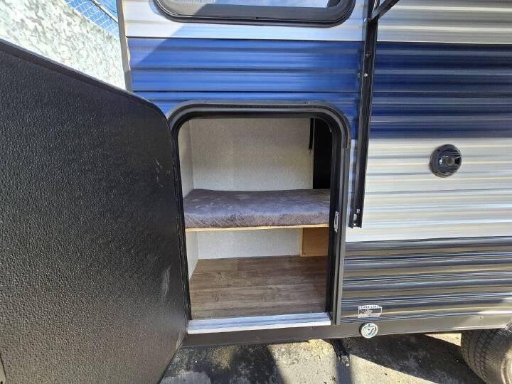 2022 Forest River Wolfe Pup, 2022 Forest River Wolf Pup 17JG Travel Trailer Lightweight, compact, and easy to tow, this 2022 Forest River Wolf Pup 17JG is perfect for families and weekend adventurers. Designed to maximize space and comfort, it offers a smart layout with sleeping room for the whole family. Features include: Bunk beds great for kids or guests Front queen bed Slide-out dinette for extra interior space Full kitchen with refrigerator, microwave, sink, and stovetop Full bathroom with shower, toilet, and sink Air conditioning and furnace Power awning for outdoor relaxation Plenty of storage inside and out This trailer is lightweight and towable by many SUVs and half-ton trucks, making it ideal for both new and experienced RV owners. Clean, well-maintained, and ready for your next adventure. We highly recommend making an appointment before coming to ensure availability and personalized service. Contact us today for more details or to schedule your visit.