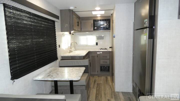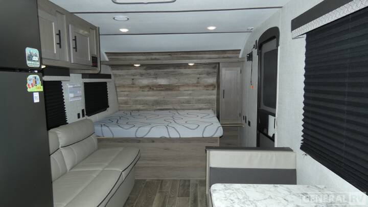 USED 2022 GULF STREAM AMERILITE SUPER LITE 199RK - 342450, Gulf Stream Ameri-Lite Super Lite travel trailer 199RK highlights: Sofa Overhead Cabinets Large Pantry Queen Bed 6-Cu. Ft. Double-Door Refrigerator Pots and Pans Drawer When you take a trip in this Ameri-Lite Super Lite travel trailer, you take a trip in affordable style. The booth dinette is the perfect place to gather together for a breakfast feast, but it also helps this trailer sleep four people comfortably each evening because it folds into a bed whenever needed. The queen-size bed in the front of this trailer adds an extra bit of sleeping space, and the overhead cabinets that are scattered throughout give this trailer many places to store all of your traveling necessities. The rear corner bath is convenient to access and provides extra privacy. If you're looking for an affordable, lightweight travel trailer, you've found it in the Ameri-Lite Super Lite by Gulf Stream. These models may be lighter in weight, but they don't skimp out on comfortable features. Each unit includes high-performance vinyl flooring throughout, a white kitchen sink, craft-made cabinetry with designer pulls, plus fabric-wrapped box valances to make you feel right at home. The 16,000 BTU furnace and 13,500 BTU A/C will keep you comfortable in any season, and each model includes multiple USB ports for your tablet and phone and a 6' 8" ceiling height for added space. These models also include a 6-gallon gas DSI water heater, a central control panel to control your unit's functions, plus plenty of safety features you are sure to appreciate for your family. You can't go wrong with an Ameri-Lite Super Lite travel trailer. Choose your favorite floorplan today!