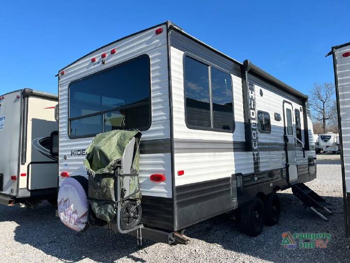 2022 Keystone RV Hideout 202RD, Used 2022 Keystone RV Hideout Family-Friendly Comfort and Adventure-Ready Fun The Used 2022 Keystone RV Hideout is a versatile travel trailer that perfectly balances comfort, convenience, and adventure ready capability. Whether you re planning weekend getaways, seasonal camping, or road-trip adventures with family and friends, the Hideout delivers spacious living, thoughtful features, and quality construction that make every journey memorable. Bright, Open Living Area Built for Memories Step inside the 2022 Keystone RV Hideout and feel instantly at home. Large windows fill the interior with natural light and help you enjoy scenic views from every campsite. The comfortable living area offers flexible seating with a sofa or convertible dinette perfect for family meals, game nights, or relaxing after outdoor adventures. The smart floorplan keeps the living, dining, and entertainment spaces connected in a comfortable and functional layout. Well-Equipped Kitchen for Camp-Ready Meals The kitchen in the Hideout is designed for both simple breakfasts and full camp-style dinners. With a cooktop, oven, microwave, and refrigerator, you have everything you need to prepare your favorite meals. Ample counter space, along with plenty of cabinet and pantry storage, means you can easily organize cookware, dishes, and snacks for life on the road. Comfortable Sleeping Spaces for All The Hideout s intelligent design maximizes sleeping comfort without compromising living space. The front private bedroom creates a peaceful retreat after a day of exploring, while additional sleeping options like convertible dinette or optional bunks provide flexibility for family, guests, or overnight visitors. Well-placed storage helps keep clothes and personal items neatly stowed for easy access. Convenient Full Bathroom No more crowded campground restrooms this model includes a full bathroom with a shower, toilet, and vanity. Thoughtfully designed, the bathroom provides everyday comfort and convenience so you can stay refreshed no matter how long you re on the road. Durable Construction and Smart Features Built with Keystone s reputation for quality, the Hideout features durable construction and reliable systems designed for years of use. Whether hitting scenic highways or rustic backroads, this travel trailer is engineered to support everyday travel and long-term fun. Exterior storage compartments keep gear organized and accessible, while interior storage solutions maintain a tidy living area. Lightweight and Easy to Tow The 2022 Keystone Hideout is lightweight enough to be towed by many midsize SUVs and light trucks, giving you the freedom to explore without heavy towing stress. Its balanced design and responsive handling make for confident travel on highways, byways, and winding rural roads alike. Top Reasons to Buy the