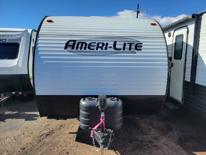 2023 AMERILITE 199DD , ===== Why Choose the 2023 Ameri-Lite 199DD? =====Because it delivers everything you need for comfortable camping in a lightweight, budget-friendly package that's easy to tow and easy to love. The 2023 Gulf Stream Ameri-Lite 199DD is built for families, couples, and first-time RVers who want reliable construction, practical features, and a smart layout without unnecessary complexity.Designed to sleep up to *6 people*, this travel trailer offers a well-balanced floorplan with dedicated sleeping areas, a functional kitchen, and a private bathroom --- all in a compact size that's perfect for weekend getaways, campground trips, and road adventures.----------------------------------------==== Key Specifications: ==== * *Dry Weight:* Approx. 3,500 lbs * *Hitch Weight:* Approx. 420 lbs * *Length:* Approx. 21' * *Height:* Approx. 10' * *Fresh Water Capacity:* 30 gallons * *Gray Water Capacity:* 36 gallons * *Black Water Capacity:* 36 gallons * *Sleeping Capacity:* Up to 6----------------------------------------==== Interior Features: ==== * *Front Queen Bed* with overhead storage for a comfortable main sleeping area * *Rear Double-over-Double Bunk Beds* ideal for kids, guests, or extra gear * *Convertible Booth Dinette* that turns into additional sleeping space * *Fully Equipped Kitchen* with refrigerator, microwave, cooktop, and ample cabinet storage * *Large Kitchen Sink* with countertop workspace * *Efficient Climate Control* with A/C and furnace for comfort in varying conditions * *Bright Interior Lighting* with a clean, functional layout * *Private Bathroom* with tub/shower combo, toilet, and sink * *Plenty of Storage* throughout for camping essentials----------------------------------------==== Exterior Features: ==== * *Lightweight, Easy-Tow Design* suitable for many SUVs and half-ton vehicles * *Power Awning* for instant outdoor shade and comfort * *Exterior Storage Compartments* for gear and camping supplies * *Durable Construction* built for long-term use * *Stabilizer Jacks* for a solid campsite setup * *City Water & Shore Power Connections* for hassle-free camping * *Classic Ameri-Lite Styling* with a clean, timeless look----------------------------------------==== What Sets the Ameri-Lite 199DD Apart: ==== * Lightweight and tow-friendly --- great for first-time RV owners * Family-focused bunkhouse layout with dedicated sleeping space * Simple, dependable systems that are easy to maintain * Excellent value without sacrificing comfort or usability * Compact size makes storage, towing, and setup stress-free * Trusted Gulf Stream construction with proven reliability----------------------------------------===== Your Camping Journey Starts Here =====The 2023 Ameri-Lite 199DD is the perfect balance of affordability, comfort, and practicality. Whether you're heading to the mountains, the lake, or your favorite campground, this trailer gives you the freedom to travel comfortably without overcomplicating the experience.Stop by to