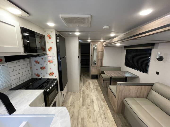 Also Includes: * FRONT QUEEN BED * GRAB HANDLE * 1 SLIDE OUT * BOOTH DINETTE * SINGLE DOOR REFRIGERATOR * MICROWAVE * 3 BURNER STOVE * SKYLIGHT ABOVE TUB * CENTER KITCHEN * CENTER LIVING ROOM * SIDE AISLE BATH W/SHOWER * TRIPLE BUNKS * AM/FM/CASSETTE STEREO * ELECTRIC WATER HEATER * PATIO AWNING * OUTSIDE SHOWER * ROOF AC * OVEN