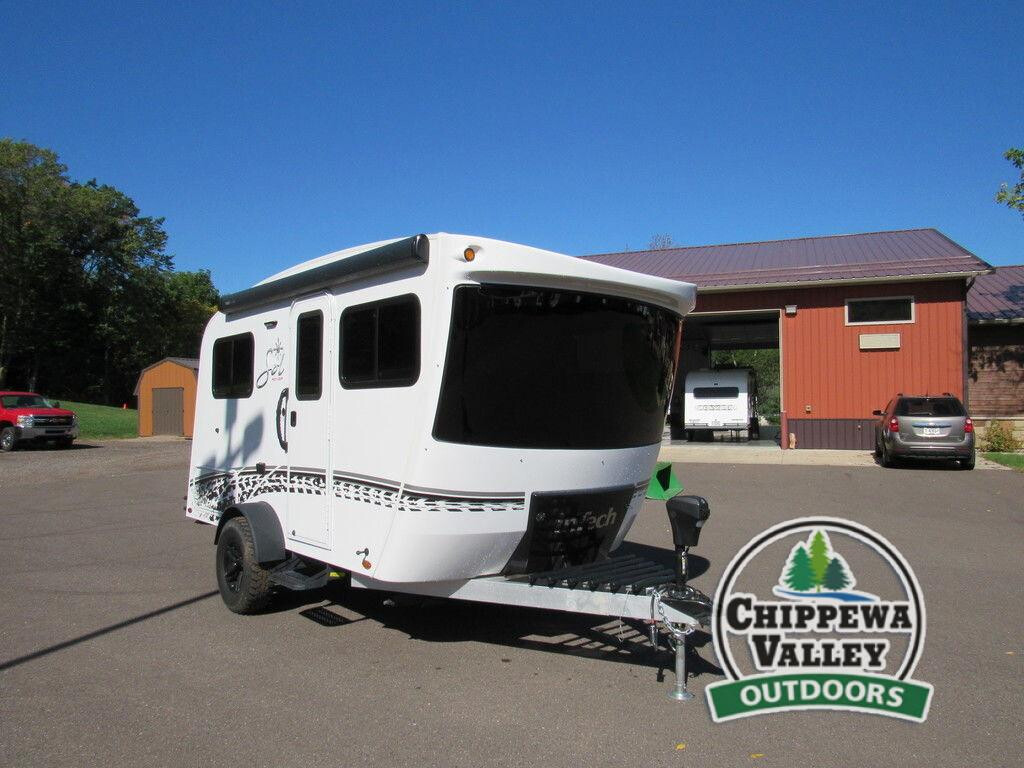With any Sol travel trailer by inTech RV you will find strong, durable construction consisting of lightweight aluminum that is easier to tow and resists rust, water, and dents. The Tilt-Forward Design creates more space inside so you can stretch out, and the panoramic windshield gives a great view of the mountains, ocean, or forest! The elegant interior features tinted windows with shades, Infinity woven flooring, and a stainless steel cooktop and microwave. You will stay comfortable year around since these models include a 13.5 BTU A/C and a 16K BTU furnace. You will also love the Rover Package that includes rugged decals, blackout wheels, a 3" lift, a tongue tie down rack, and more rugged features!
