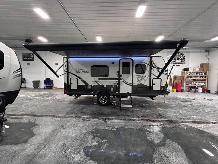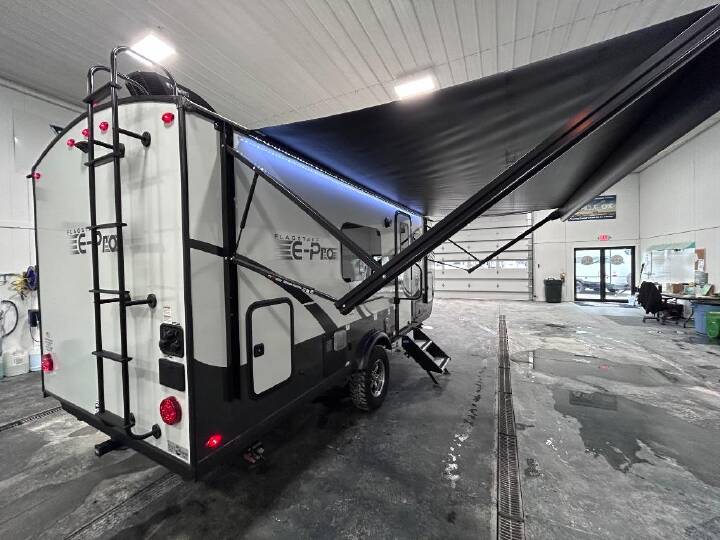 Whether you enjoy staying at the campground for a weekend or longer and/or you enjoy off-grid camping, this 20'2" long trailer gives you lots of interior space and versatility to enjoy each and every trip. From the Murphy bed/sofa combo up front offering sleeping space and seating depending on which you prefer at the time, to the full rear bathroom which also offers linen storage, you will have everything you need. And the kitchen cooktop, microwave and 12V refrigerator allow you to make meals and store leftovers. Two can dine at the booth dinette or you can eat outdoors under the 14' power awning. With any Flagstaff E-Pro travel trailer by Forest River, you will experience lightweight towing, style and features that will meet your needs, plus amenities that give you more than you expected! Built with interior and exterior composite sidewall construction, tongue and grove plywood flooring, and a vacuum laminated roof and walls, plus torsion axle, Rubber-Ryde suspension, and a tire pressure monitoring system for safety while traveling. And the 200 watt roof mount solar panel with 1,800-watt inverter will allow you to stay off-grid if you like. The interior offers a comfortable environment with the choice to use the air conditioner or furnace, and a 12V entertainment TV with stereo to stay up to date on your favorite movies. Make your selection today!