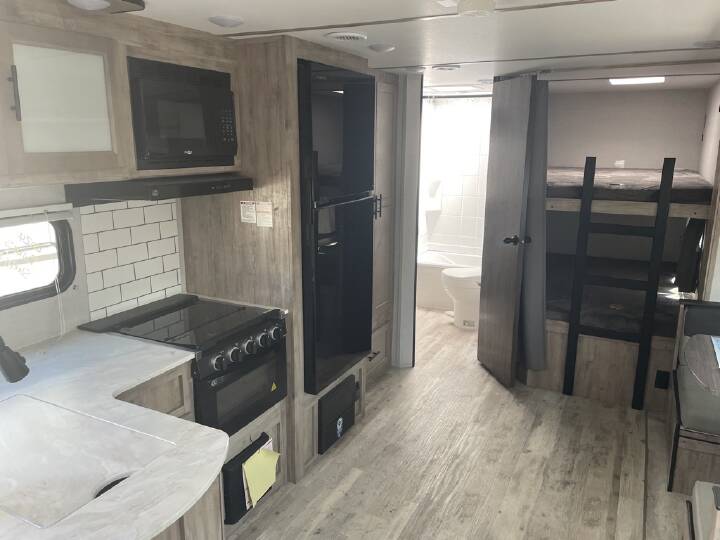 Sleeps9Slides1Length29 ft 6 inExt Width8 ftExt Height11 ft 1 inInt Height6 ft 8 inHitch Weight660 lbsDry Weight5177 lbsCargo Capacity2483 lbsFresh Water Capacity23 galsGrey Water Capacity36 galsBlack Water Capacity36 galsTire Size14"Furnace BTU20000 btuNumber Of Bunks2Available BedsQueenRefrigerator TypeEverchill Refrigerator/FreezerRefrigerator Size10.7 cu ftCooktop Burners3Number of Awnings1LP Tank Capacity20 lbsWater Heater TypeTanklessAC BTU13500 btuAwning InfoElectric with LED LightsAxle Count2Number of LP Tanks2Shower TypeTub/Shower ComboElectrical Service30 amp