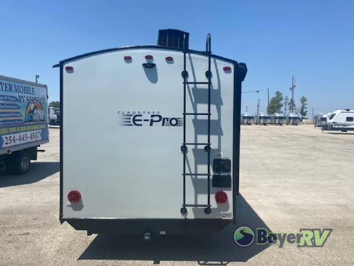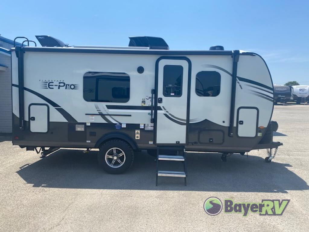Camp with your favorite person in this trailer with the versatile Murphy bed/sofa combo up front giving you both a living area and a bedroom when you so choose. If you need sleeping space for one more, the dinette will provide that once easily setup. The large window gives you great views while dining or playing games. There is extra floor space in this trailer with the kitchen slide out that offers full amenities plus a sink to keep everything clean. And the full-length rear bathroom offers a spacious area to change your clothes in privacy and get cleaned up in the large shower. With any Flagstaff E-Pro travel trailer by Forest River, you will experience lightweight towing, style and features that will meet your needs, plus amenities that give you more than you expected! Built with interior and exterior composite sidewall construction, tongue and grove plywood flooring, and a vacuum laminated roof and walls, plus torsion axle, Rubber-Ryde suspension, and a tire pressure monitoring system for safety while traveling. And the 200 watt roof mount solar panel with 1,800-watt inverter will allow you to stay off-grid if you like. The interior offers a comfortable environment with the choice to use the air conditioner or furnace, and a 12V entertainment TV with stereo to stay up to date on your favorite movies. Make your selection today!