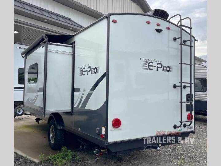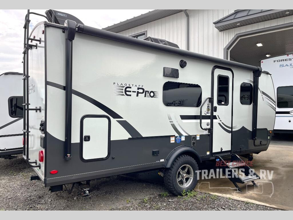 Get ready for a spacious and comfortable trip in this trailer, plus you will have a convenient rear full bathroom with an oversized shower and linen storage to utilize instead of using the campground's facilities. The walk-around full bed gives you two sides with wardrobes to claim as your own. And the kitchen offers full amenities to make meals, and the outside griddle gives you even more choices when cooking. You can relax, dine, or even work from the slide out sofa with a 30" x 15" table and watch the 32" TV. You will find storage along the exterior for your outdoor gear, plus a 14' power awning. With any Flagstaff E-Pro travel trailer by Forest River, you will experience lightweight towing, style and features that will meet your needs, plus amenities that give you more than you expected! Built with interior and exterior composite sidewall construction, tongue and grove plywood flooring, and a vacuum laminated roof and walls, plus torsion axle, Rubber-Ryde suspension, and a tire pressure monitoring system for safety while traveling. And the 200 watt roof mount solar panel with 1,800-watt inverter will allow you to stay off-grid if you like. The interior offers a comfortable environment with the choice to use the air conditioner or furnace, and a 12V entertainment TV with a stereo to stay up to date on your favorite movies. Make your selection today!