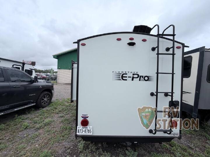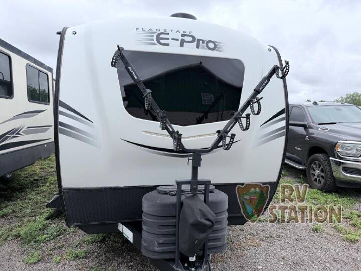 Get ready for a spacious and comfortable trip in this trailer, plus you will have a convenient rear full bathroom with an oversized shower and linen storage to utilize instead of using the campground's facilities. The walk-around full bed gives you two sides with wardrobes to claim as your own. And the kitchen offers full amenities to make meals, and the outside griddle gives you even more choices when cooking. You can relax, dine, or even work from the slide out sofa with a 30" x 15" table and watch the 32" TV. You will find storage along the exterior for your outdoor gear, plus a 14' power awning. With any Flagstaff E-Pro travel trailer by Forest River, you will experience lightweight towing, style and features that will meet your needs, plus amenities that give you more than you expected! Built with interior and exterior composite sidewall construction, tongue and grove plywood flooring, and a vacuum laminated roof and walls, plus torsion axle, Rubber-Ryde suspension, and a tire pressure monitoring system for safety while traveling. And the 200 watt roof mount solar panel with 1,800-watt inverter will allow you to stay off-grid if you like. The interior offers a comfortable environment with the choice to use the air conditioner or furnace, and a 12V entertainment TV with a stereo to stay up to date on your favorite movies. Make your selection today!
